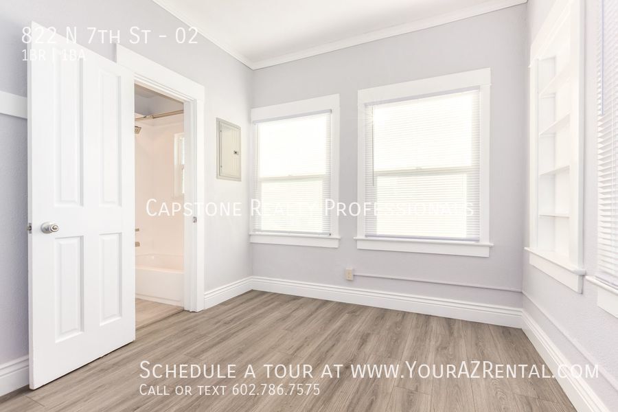 Experience the perfect blend of modern style and classic charm. This captivating 1 bedroom, 1 bathroom unit boasts a bright and airy layout accented with crown molding and stylish built-in shelving. Large windows throughout invite natural light, creating a welcoming ambiance. Maximize your space! The versatile bonus room provides the ideal spot for a home office, hobby area, or even a cozy reading nook. Unleash your inner chef! The modern kitchen features sleek cabinetry, top-of-the-line stainless steel appliances (including a gas stove and range!), and stunning granite countertops. Plus, the convenience of a dishwasher and in-unit stackable washer and dryer makes everyday living a breeze. Location is everything! Immerse yourself in the vibrant downtown scene. This prime location offers easy access to ASU's downtown campus, a plethora of restaurants and bars, and fantastic shopping options. Getting around is a breeze with quick access to the I-10 freeway. Don't settle for ordinary! Contact us today to schedule a tour of your new home! PHOTOS OF SIMILAR UNIT- MAY NOT BE EXACT. --- Monthly Fee: Resident Benefit Package $49.99 Water/Sewer/Trash $50.00 Security Deposit: Equal to one months rent Cleaning Deposit: $275.00 Pet Deposit: $200.00 per pet One Time Lease Administrative Fee: $150.00 Assigned Parking Built In Shelving Dryer Historic Neighborhood No Hoa Pets Landlord Approval Vinyl Flooring Throughout Washer