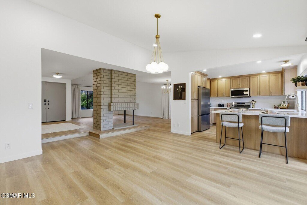 Turnkey and beautifully updated, this Village Homes residence offers modern style, tasteful upgrades, and effortless living. The open-concept floor plan showcases vaulted ceilings, abundant natural light, formal living and dining areas, and a decorative cozy fireplace, creating a warm yet contemporary space ideal for both everyday living and entertaining.The stunning new kitchen is the heart of the home, designed with shaker-style wood cabinetry, elegant quartz countertops, and a striking tile backsplash that adds texture and sophistication. Complemented by brand-new stainless steel appliances, this space seamlessly opens to the dining area and backyard, offering both beauty and functionality.The kitchen and dining area open to the private and charming backyard with beautiful mountain and city views. Generously sized and peaceful, it's perfect for relaxing evenings, entertaining guests, or enjoying quiet outdoor moments.A dedicated laundry room with a washer and dryer included adds everyday convenience and functionality.Residents enjoy access to the Village Homes community pool and clubhouse, providing additional options for hosting gatherings, barbecues, or enjoying a refreshing swim.Ideally located near Evenstar Park, Triunfo Community Park, and the Triunfo Trailhead, with nearby shopping, popular dining including Crawford's Social and Stonehaus, and top-rated schools just minutes away. This home offers the best of convenience, community, and lifestyle!