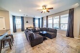 Relocating or working remotely? This spacious home is close to everything in the Greater Austin Area. Whether you are here for a baseball game, conference, concert, Formula One, SXSW, or for work or fun, you are going to love this location. Kalahari and Dell Diamond are minutes away. After you come back from your day, relax by the fire pit or grill up some steaks. Love foosball or kickboxing? This home has you covered there too! There is something for everyone. Must be 25 years or older to book. Rooms are comfortable and ready for your relaxation preference. Two of the bedrooms are in the front near the entrance and the master is at the back of the home. This was a model home so you will enjoy all the upgrades here! The garage has been turned into an athletic and fun zone, so feel free to kickbox, work out, or play foosball. You will have full access to the entire home except the owner's closets, which are located between the bedrooms in the front and in the master bathroom. Enjoy the fenced-in backyard with a fire pit for roasting marshmallows and unwinding after your day. [SI]