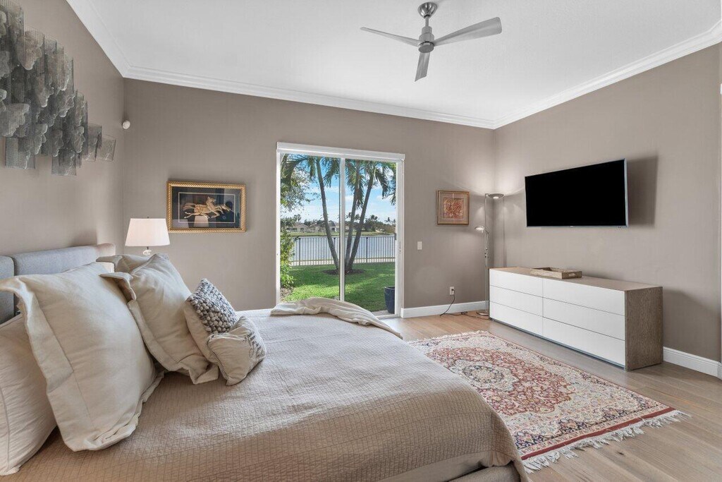 This exquisite home,w/ 24-hour manned security-gated community of Villagewalk,is nestled at the end of a cul-de-sac for max privacy. This beautiful home has 2 separate & fully gated gardens overlooking the lake,w/ a fabulous saltwater pool,& a full summer kitchen w/ fridge & gas grill. Inside,the 3-bedroom,3-bathroom home (the main suite has 2 separate bathrooms) boasts an open-floor plan ideal for family living & entertaining. Ideally located 8 mins from Wellington Equestrian Center showgrounds,10 mins from Polo. The beaches are 30 mins away & only 20 mins to the Airport. Other amenities include free cable,wi-fi,gym access,interior walking paths,4-lane heated lap pool,6 tennis courts,central post office & beautiful lake surroundings. MLS ID B26007855