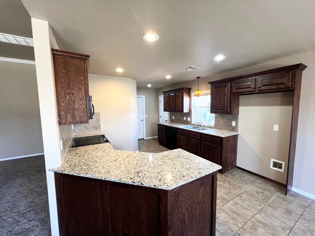 Home in Northwest oklahoma with 4 beds and 2 full bath. 1868 SF of living space. Kitchen opens out into breakfast/dining area and huge living room. Vaulted ceilings with fan. Luxury vinly plans throughout home and tile in kitchen and dining area. Split concept with main room on one side of home and other 3 rooms and second bathroom on other side. The main suite is spacious with full bath room and large closet. Back yard has a covered patio and fully fenced for outdoor private entertaining.