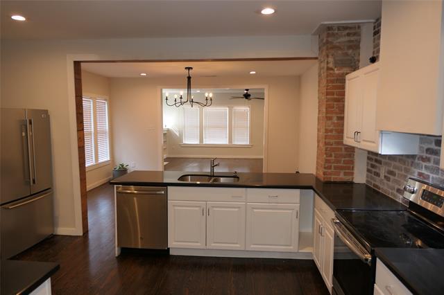 Fabulous remodeled 3 bed, 2.5 bath craftsman home has an open layout with tall ceilings, hardwood flooring and lots of natural lighting. Large living areas have recessed lighting, fireplace and shelving. Chef's kitchen has quartz counters, stainless steel appliances and a brick backsplash! Master suite has an spacious private bathroom and a large walk-in closet. Bedrooms 2&3 have a Jack and Jill bathroom. Large fenced backyard has a brick patio, raised planter boxes for gardening, and a chicken coup for extra storage. Extras Include: central heat & air with a Nest thermostat, radiant barrier and lots of insulation in attic, tankless water heater, solar panels, full size utility room and a large front porch for relaxing. Alley in back is a dedicated hike & bike trail that leads to the Santa Fe Trail. Conveniently located near Baylor Hospital, Downtown, award winning Woodrow Wilson HS, Lakewood shopping center and White Rock Lake! Available around November 10th!