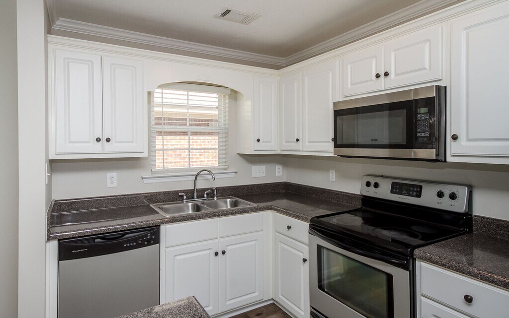 Available 03/01/2026. Monthly rent is $1,500. Minimum credit score of 650 required. No pets, no roommates, no smoking. $1,500 security deposit required. 2 story townhome w/ single car garage. Hard surface flooring throughout. Ceramic tile in bathrooms. Open floor plan w/ high ceilings, recessed lights, laundry closet down & 2 " faux wood blinds throughout. Glass french doors to 2nd bedroom. Kitchen w/ island & stainless appliances. Lots of windows for natural light. New Heat & Air! Designated two car parking. Fenced back yard w/ patio. Subdivision offers community pool, clubhouse, street lights, stocked pond & 2 playgrounds. Access to pool is $500 per year and is optional.