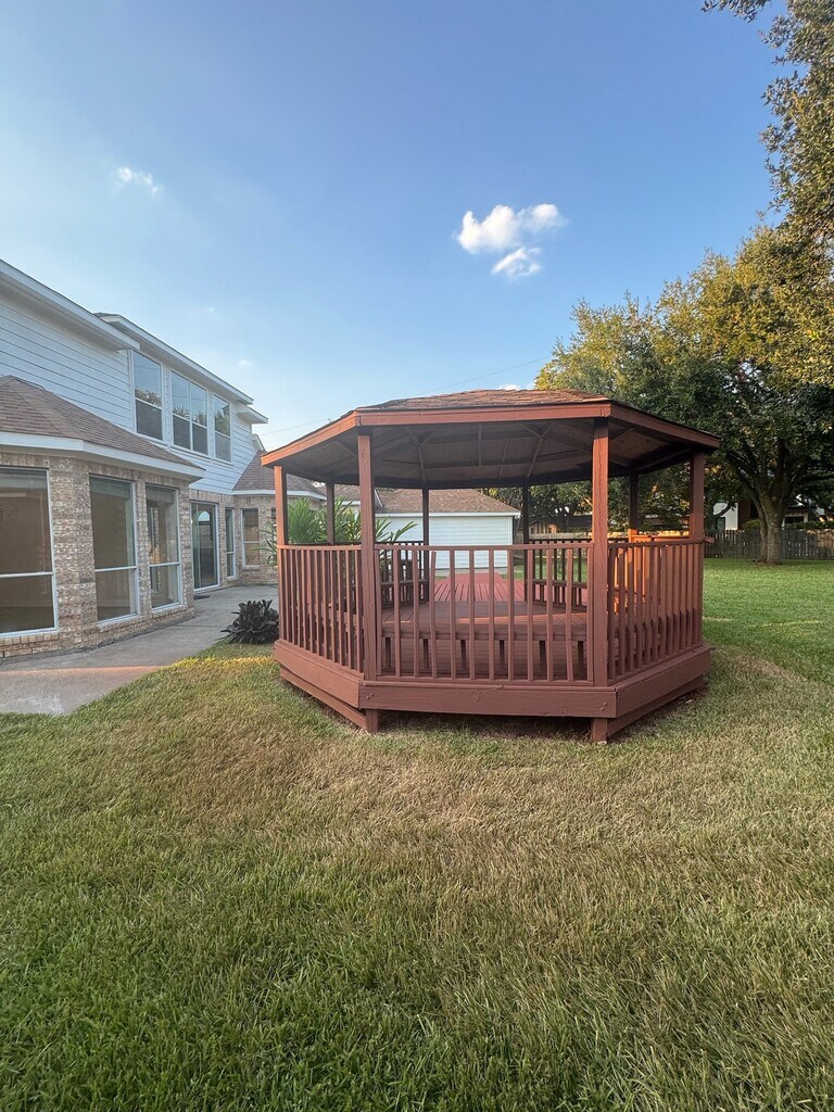 Welcome to this exceptional residence in the Sugar Lakes community next to Venetian States. The property boasts a spacious backyard and is conveniently situated just blocks from HWY 90,HWY 59,and HWY 6,and only minutes from Beltway 8. These major thoroughfares provide easy access to Sugar Land Town Center,Methodist and St. Luke's Hospitals,University of Houston in Sugar Land,Memorial West area,the Medical Center,the Galleria,Downtown Houston,and NRG Park. Enjoy being just minutes from Houston's famous dining and fine local shops. Residents enjoy a variety of amenities,including a pool,tennis courts,and parks for outdoor recreation. Inside,the home features granite countertops in the kitchen and bathrooms,with hardwood flooring in all upstairs bedrooms. Outdoors,the deck and gazebo provide an ideal setting for relaxation,while mature trees offer shade and privacy. Recently painted and remodeled,this immaculate home presents a serene retreat designed for modern comfort. MLS# 96328975