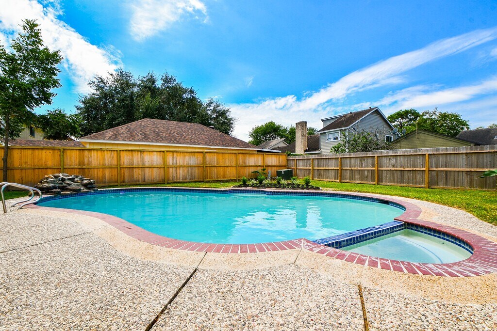 Welcome to this charming 4-bedroom,2.5-bath home with pool/spa on a large corner lot! This beautifully updated home features great curb appeal with mature trees & a pool w/covered patio. Inside,enjoy modern upgrades including all new flooring,beautifully arched openings,bull-nosed corners,granite in all wet areas,updated appliances,all new light fixtures and fans,all new flooring,new wood steps with iron baluster railing,and fresh paint inside/out. Other enhancements include a newer HVAC (2020),new pool pump,2 new pool skimmers,new pool lights,new vanities in the primary bath,updated kitchen cabinetry (2020) new window treatments,new door knobs,new electric panel,and more. Features an oversized garage with plenty of additional space. Conveniently located near acclaimed Cy-Fair schools,shopping,and dining,with proximity to HWY 290 and the Beltway. This home offers both comfort and style and is perfect for those seeking a blend of elegance and modern amenities MLS# 78241279