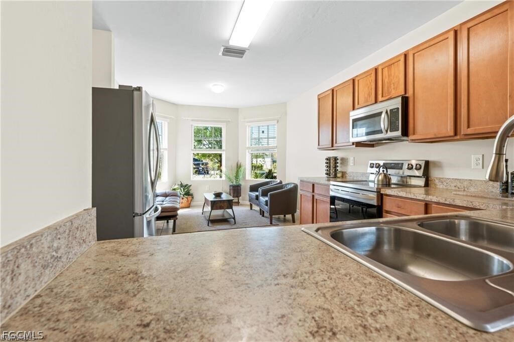Discover peace and tranquility at this wonderful home within the lovely community of Town Lakes. Entering through the front door the expansive living area is inviting you further in. Passing the spacious full kitchen on your left,the dining room and family room combine into a very large great room. This great room is ideal for relaxing with your family and friends as well as perfect for hosting parties. Walk through the rear sliding glass doors and into the Florida room (enclosed lanai) with several windows maximizing natural light. Here you may be found drinking your morning coffee and beholding the colorful sky from a gorgeous sunrise. You may also utilize the Florida room as an office,a playroom for children,or a room for your pets. Watch squirrels,bunnies,and owls approach your property from their natural habitat of preserves just beyond your back yard. Add your personal touch in beautifying the garden in the rear section of the property. Also,the fence around the back yard allows peace of mind for children to play or to let pets outside. The large breakfast nook at the front of the home not only adds further charm,but it also offers more opportunities to creatively utilize space. You have plenty of space in the generous-sized master bedroom for a king-size bed and multiple pieces of furniture. The master bathroom gives ample space for both you and your spouse because it includes a long bathroom counter with two sinks,a large walk-in closet,a linen closet,as well as a toilet room. Do your laundry in the air conditioned laundry room rather than in a hot garage. The home is equipped with thermal windows,helping to keep the home cooler and saving energy. The roof was installed in 2022. The irrigation system allows for the lawn to be lush and green. The aluminum shutters provide hurricane protection and this community is on the hospital power grid. Go safely walking or jogging on sidewalks throughout the beautifully landscaped neighborhood. Go fishing,kayaking,or canoeing in the many lakes in the community. Expect to see ducks,herons,cranes,ibises,rabbits,turtles,and more as you explore the neighborhood. And,essentials and excitement are just minutes away!
