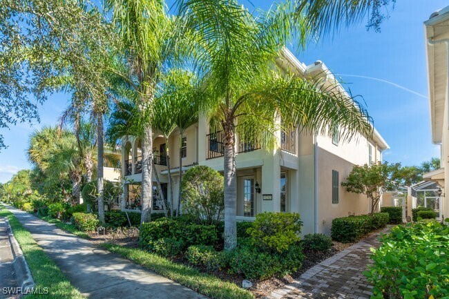 A rarely offered,three bed/three bath Dublon townhome has entered the rental market. This is a bright,inviting space with plenty of room to spread out. Owners opted for upgrades. Tile floor laid on the diagonal and hardwood flooring that extends up the staircase make for ease of cleaning. Overhead are custom ceiling fans and wrap around crown molding. The open concept kitchen has rich wood cabinets with granite counters and tile backsplash. A breakfast bar offers additional seating. Stainless appliances add sparkling appeal to round out the space. Two master suites are located on the second floor each having luxurious baths with custom shower surrounds. One bedroom has its own balcony to take in a morning coffee or afternoon reprieve overlooking a delightful water view. This floor also contains your full laundry room with wash sink and storage cabinets. A lower bedroom with private entrance steps out onto a porch of its own. To the back,is a large,private,screen enclosed lanai that connects to your rear loading two car garage.
