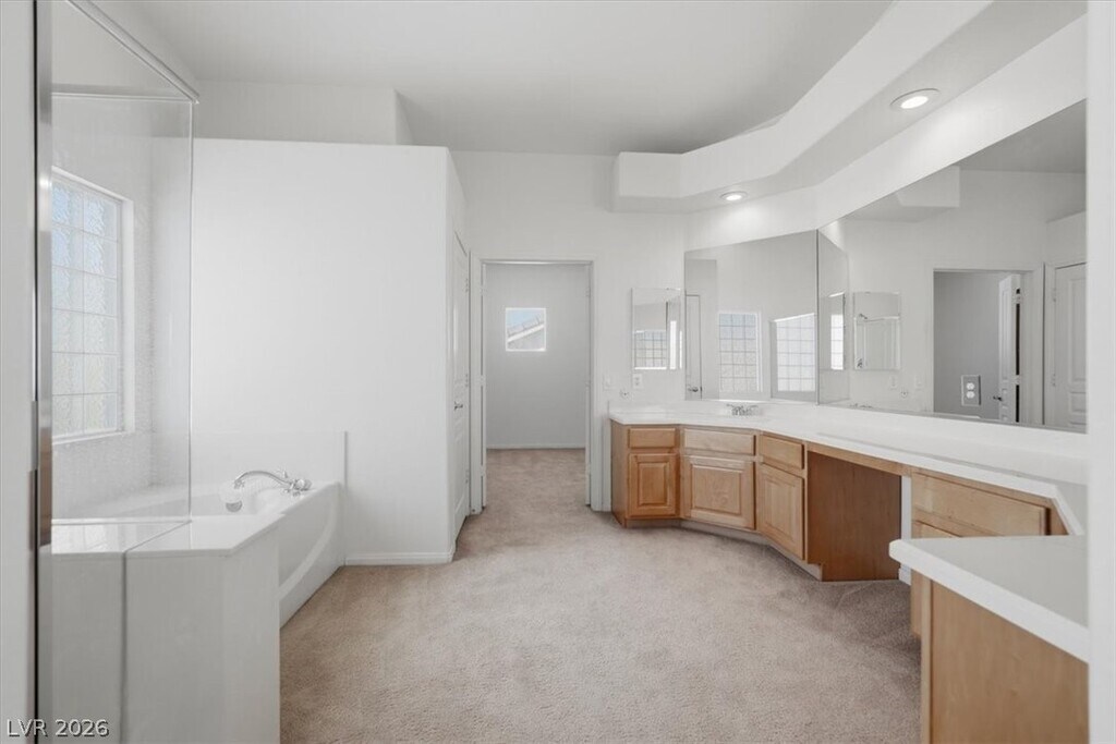 Spacious 4-bedroom, 4-bath home in desirable Silverado Ranch with a 3-car garage and solar-heated pool. This well-designed home features a formal living and dining room with vaulted ceilings, plus a separate family room with a cozy fireplace. The kitchen offers granite countertops, center island, double ovens, walk-in pantry, and a bright breakfast nook. The large primary suite includes a private balcony, oversized walk-in closet, dual sinks, makeup vanity, soaking tub, and separate shower. Bedrooms 2 and 3 share a Jack-and-Jill bath, while bedroom 4 has its own ensuite. Enjoy a private backyard with covered patio and sparkling pool, perfect for relaxing or entertaining. All appliances included.