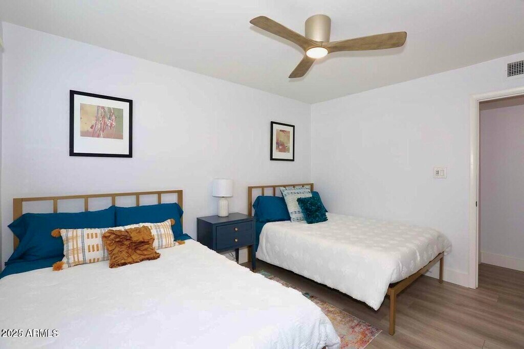 Fully Furnished stunningly remodeled 3-bed/2.5 bath Chaparral Park Townhome! This 2-level home is minutes from Old Town,Fashion Square,101 Loop,canal trail & Chaparral Lake. Conveniently close to Mayo,Banner,WestWorld,spring training,universities and exceptional dining and shopping. Stylish,comfortable living room,work from home desk space,dining area for 6. Spacious kitchen looks out to patio w/quartz counters,SS appliances,pantry and laundry. King size primary bedroom w/ensuite bath w/step in shower,walk in closet. Queen size 2nd bedroom and 3rd bedroom with 2 twin size beds. This home is outfitted with smart TV's on both levels,a fully stocked kitchen and a great patio for relaxing and entertaining. The community pool is steps from front door.