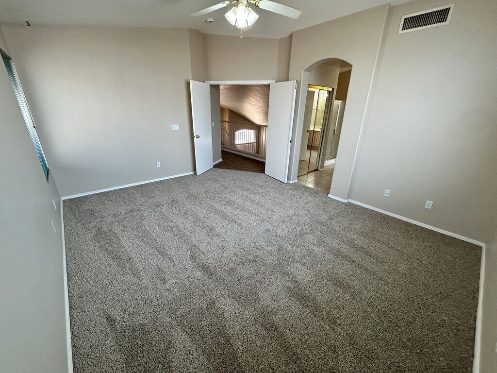 This inviting home welcomes you with a large bright living room with vaulted ceilings that creates an open and airy atmosphere. Adjacent to the kitchen is a dining area that flows into a cozy family room with a fireplace offering a great spot to unwind. The kitchen provides plenty of cabinet space for storage and meal preparation while a bedroom and full bathroom on the first floor make an ideal guest suite or home office. Upstairs, the spacious primary suite includes a walk-in closet and an ensuite bathroom with dual sinks, a soaking tub, a separate shower, and a private toilet room. Two additional bedrooms share a full hallway bathroom, providing plenty of room for family or guests. Outdoor living is just as inviting, with a covered patio perfect for outdoor dining or relaxation and a large backyard offering ample space for play, gardening, or entertaining. Laundry hookups for your washer/dryer and a 2 car garage completes this home. Located just minutes from Routes 101 and 60, this home is ideal for commuters and close to parks, shopping, and dining. Home is pet-friendly for up to two spayed or neutered pets with an additional $350 per pet fee. We do not list on CRAIGSLIST OR FACEBOOK MARKETPLACE SO IF YOU SEE IT ON THERE IT IS A SCAM $50.00 non-refundable application fee per person; age 18 or over. Full security deposit of $1999 is due upon approval. Move in date must be between 7 & 30 days from lease signing/payment of security deposit. If moving in on or after the 5th then pro-rated current month rent is due as well as the following full month. All rent is due 7 days prior to move in.