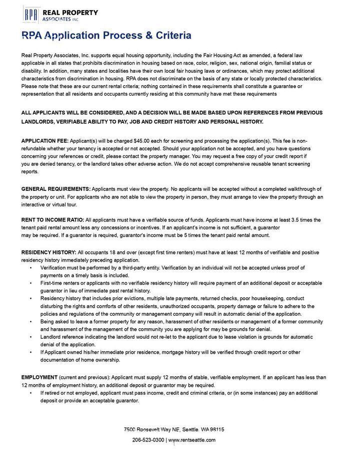 Welcome to this charming apartment located in the Leschi neighborhood! This property offers a delightful 2-bedroom, 1-bathroom apartment that is perfect for those seeking a comfortable and spacious living space. The apartment features spacious rooms with plenty of natural light streaming through the large windows, creating a warm and inviting atmosphere. The shared backyard is fenced, providing a safe and secure space. Nature enthusiasts will appreciate the proximity to Judkins Park and the beautiful Lake Washington, offering endless opportunities for outdoor activities and relaxation. Parking is hassle-free with off-street parking options available and easy street parking. The convenience of shared laundry facilities ensures that your laundry needs are taken care of without any hassle. The apartment also boasts a spacious full bathroom with a tub. Don't miss out on this fantastic opportunity to call this charming 2-bedroom, 1-bathroom apartment your new home. 12-Month Lease Available! Water/Sewer/Garbage: Pro-rated based on occupancy Application $45 per person/adult. Available Now, First & Deposit. Refundable Security Deposit: $1,795 1 pet max, under 35 lbs, no aggressive breeds - $30 pet application per pet - $300 refundable pet deposit and $35 monthly pet rent per pet ***TO SCHEDULE A SHOWING***: Renter's legal liability insurance is required and part of the Benefits Package ($30 monthly). If qualifying legal liability insurance is purchased and provided by tenant to RPA, the benefit package can be reduced to $15 monthly for reduced benefits or waived upon request. Professionally managed by: Real Property Associates, Inc. Please contact or call *In-person Tour Only **Applicant Criteria - ***Please visit our company site at for accurate information regarding unit pricing Great Natural Lighting Judkins Park Large Fenced Backyard Large Rooms Large Windows Leschi Neighborhood Near Lake Washington Pet Friendly Shared Yard