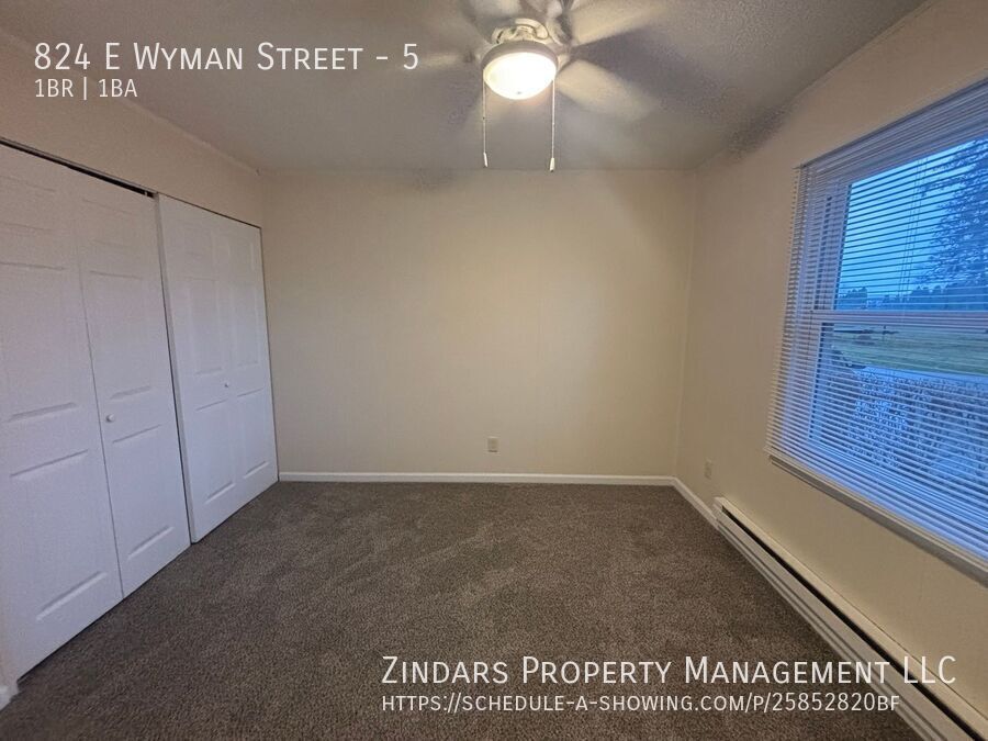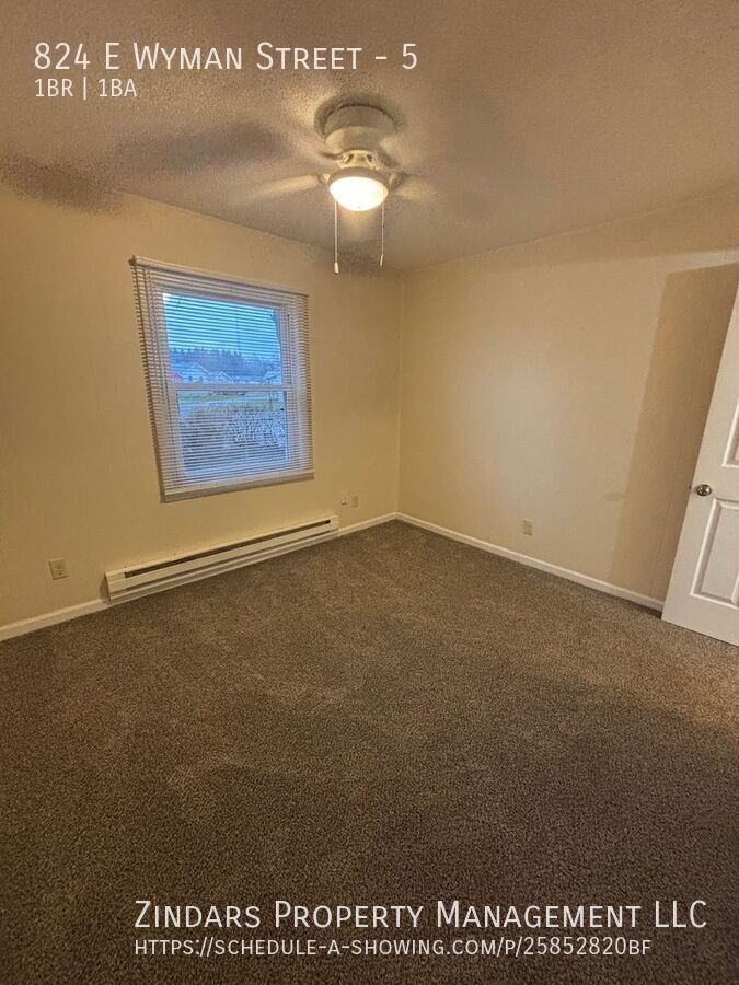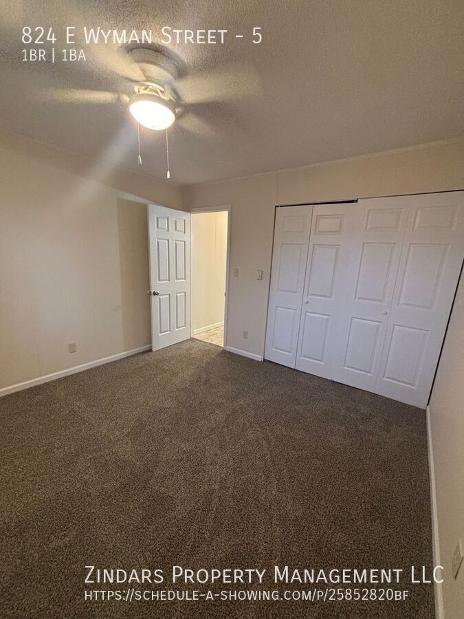 There is currently a 1 Bed 1 Bath Apartment for rent with 850 listed at 824 E Wyman Ave. It is Available Now.