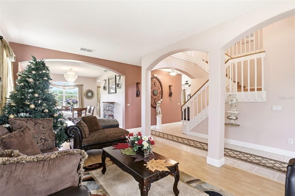 Come view this well-curated,fully furnished 5 bed/3.5 bath elegant home located in the gated community of Hidden Lakes! Centrally located near Lake Nona,Kissimmee,and Downtown Orlando with easy access to SR 417,Turnpike,shopping,dining,schools,hospitals,theme parks,and Orlando International Airport. Step inside through the arched entryway into high ceilings and a timeless,classical interior. The home is adorned with ornate furnishings,large windows with water views,and plenty of natural light. The first floor of this two-story home features a drawing room,formal living and dining rooms,and a well-appointed kitchen with beautiful cabinetry,ample counter space,stainless steel appliances,a bar counter,and a dining nook overlooking the water. A convenient half bath completes the main level. Upstairs,you’ll find all bedrooms along with an additional loft space. The primary suite offers elegant furnishings,a tray ceiling,and an en-suite bathroom with an enclosed toilet,separate shower and soaking tub,double vanities,and a walk-in closet. The remaining bedrooms are beautifully furnished and share two full baths. An upstairs laundry room adds everyday convenience. Community amenities include a swimming pool,playground,and basketball court. Available furnished or unfurnished. $95 non-refundable application fee per applicant. Pets OK with $350 deposit ($150 refundable). Qualifications: Income 3X rent,credit score of 600 plus,and background checks. Equal Opportunity Housing. MLS# O6402601