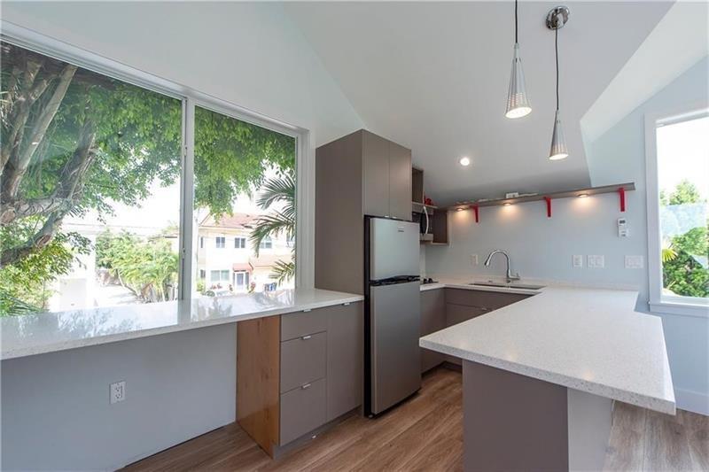 Super charming studio apartment in a modern private compound, nestled in beautiful Victoria Park! This bright second-floor unit features a delightful treehouse vibe with high vaulted ceilings that create an airy atmosphere. A loft-style bed overlooks the spacious living area and a chic Euro-design kitchen equipped with stainless steel appliances, washer and dryer and a convenient breakfast bar. With wood tile flooring throughout, cleaning is a breeze. Enjoy the benefits of impact windows and doors that flood the space with natural light. A semi-private entry and off-street parking for your convenience. Water, trash, and electricity are included. Minutes from the beach, Downtown Fort Lauderdale, parks, shopping, and more, this apartment is the perfect place to call home. Welcome!