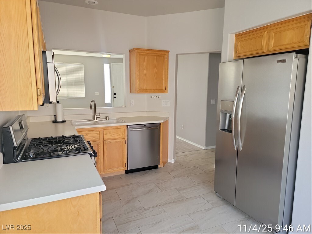 Welcome home to this charming single-story in a gated Silverado Ranch community. The open and bright layout features an inviting living and dining area that offers plenty of space to relax or entertain. The kitchen includes stainless steel appliances and a cozy breakfast nook overlooking the backyard. The spacious primary suite provides great natural light and a walk-in closet. Enjoy a low-maintenance outdoor space with synthetic grass and desert landscaping—ideal for easy upkeep. Community amenities include a refreshing pool and relaxing spa. Small pets considered. RV parking may be available through the HOA on a first-come basis for an additional fee. (Base rent $1700 + 37 RBP).