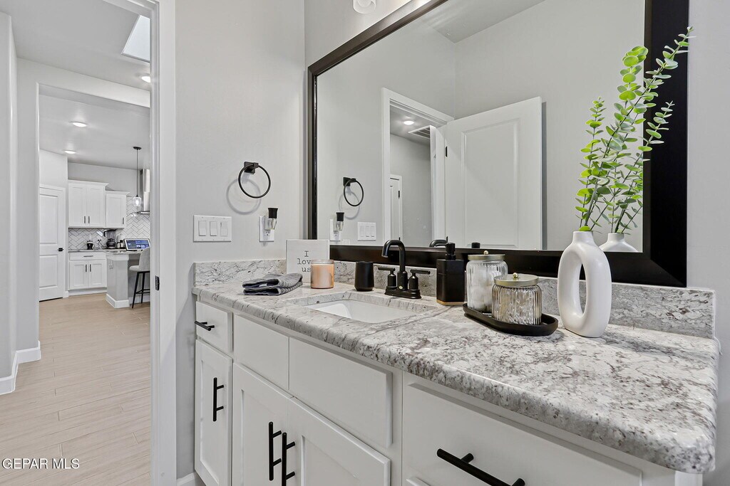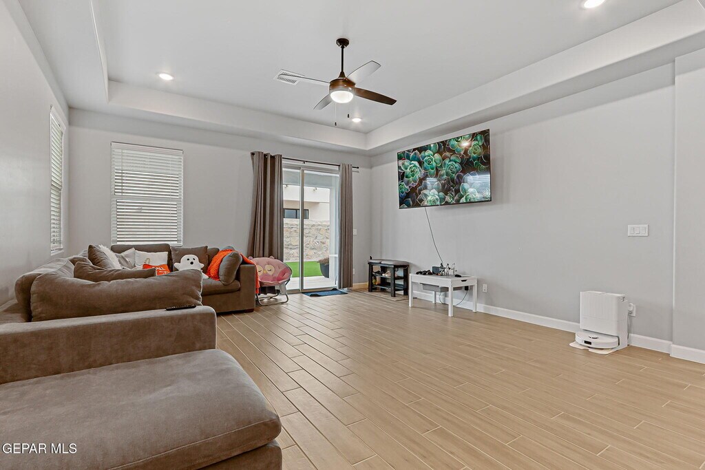 Henry GuillenThis nearly new, single-story home offers the perfect blend of style, comfort, and functionality in a growing neighborhood. Situated on a spacious corner lot, it showcases beautiful curb appeal with rich brown-tone accents, and cultured stone details. Step inside to a welcoming office with French doors, then flow into the open-concept living space. The gourmet kitchen features an oversized granite island with bar seating, sleek stainless steel appliances, recessed lighting, and a walk-in pantry. A subway tile and mosaic backsplash with glossy white finishes add modern elegance, all seamlessly connected to the dining and living areas that open to the backyard retreat. The primary suite ft. tall ceilings w. leveled accents, and a spa-like bath with a soaking tub, a stone-and-tile walk-in shower, dual granite vanities, and a spacious walk-in closet with built-in shelving. Out back, enjoy a private oasis with a covered patio w. recessed lighting, and a gazebo for extra shade ideal for relaxing & entertaining!
