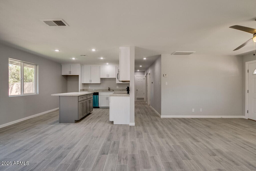 Beautiful remodeled home in the heart of Tempe. Open floor plan with easy care plank look tile floors throughout. The large kitchen island with granite counter tops will easily become your family gathering place! Ceiling fans in every room. Large front yard / back yard with grass. One car garage with opener and direct access into the house. This house has all you're looking for and great location close to ASU,shopping,restaurants and much more!!