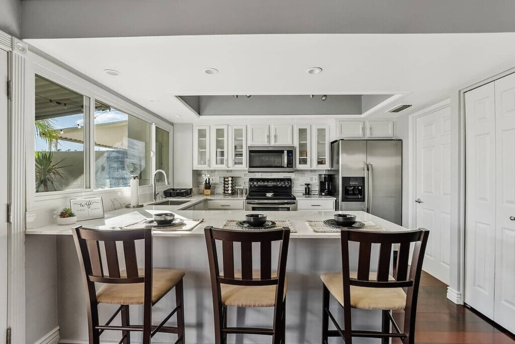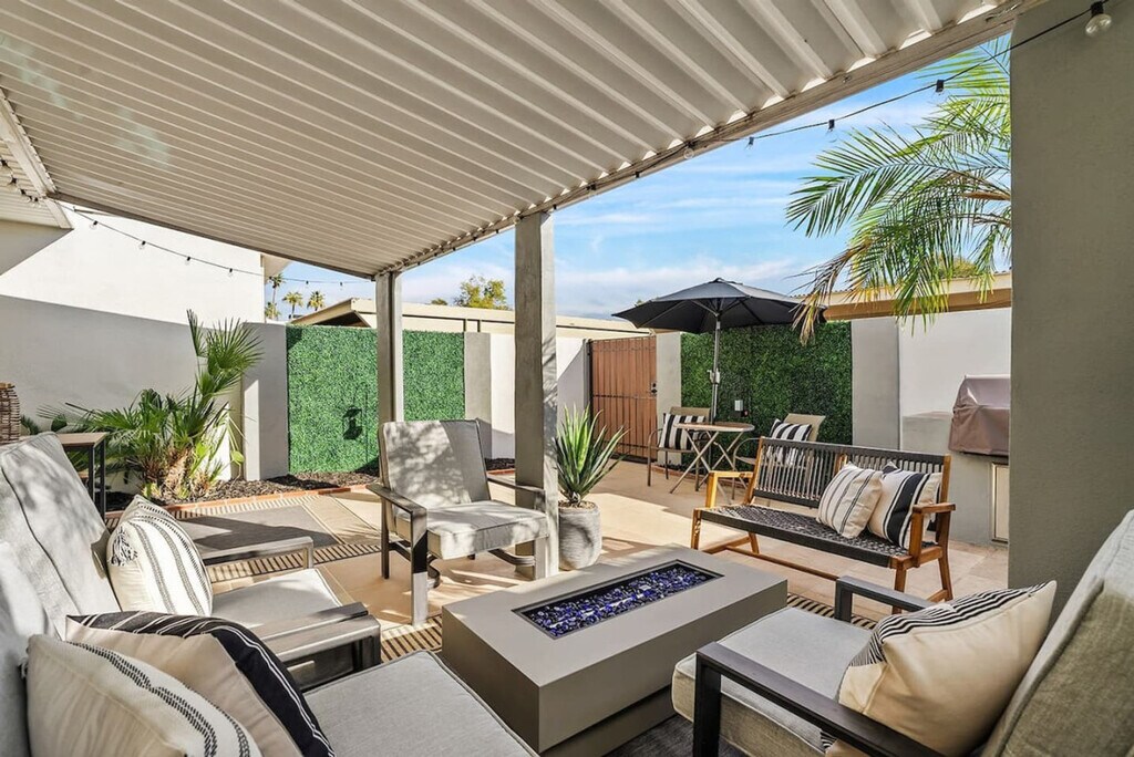 Nestled beside the serene green belt and Chaparral Park, this extraordinary gem commands an unparalleled location. Merely moments from the 101, Old Town Scottsdale, and Fashion Square Mall, this welcoming 3-bedroom, 2.5-bathroom townhome beckons you. As you cross the threshold, you'll encounter refreshed flooring spanning the entire space, a contemporary kitchen graced with stainless steel appliances, and a seamless transition from the tranquil patio to the open concept dining area. Upon stepping into the property, you'll immediately sense the meticulous consideration given to your comfort and overall experience. The tranquil patio is the ideal retreat following a day of hiking or shopping. Recharge and unwind beside the inviting fire pit. Transitioning into the dining room, the seamless open floor plan connecting the kitchen and living room becomes immediately apparent. The well-designed space invites you and your guests to indulge in board games at the dining table or enjoy dining at the breakfast bar. Venturing upstairs, a haven of bedrooms awaits, promising a peaceful night's sleep. The master suite boasts not only a generously sized walk-in shower but also a spacious closet, ensuring both luxury and functionality. Guests will have full access to the entire property. There is a $100 per day charge to heat the pool. This property is centrally located in Scottsdale and super close to the most popular park in Scottsdale, Chaparral Park, which features huge walking paths, a dog park, playgrounds, and more. Uber, Lyft, Waymo, and Turo are all available in this area. There are 2 covered parking spots available at the condo. Fire pit is run by propane and needs to be turned off after every use. Both the City of Scottsdale and the HOA Community are very sensitive to disruptions from vacation homes, so do not make the rental an issue. All guests wanting to book need to be 21+ unless otherwise approved by the host. No additional guests other than the ones staying are allowed without prior arrangement; violating this will incur a $200 charge per person per day. Any excessive cleaning required is $50 per hour. Tampering with security equipment is grounds for immediate cancellation of the booking. No animals are allowed; bringing an animal after violating the house rules will result in being asked to leave the premises without a refund and a possible fine up to $300. No smoking, vaping, or drug use is allowed; violating this zero-tolerance policy will result in a $500 fine and an additional $25 charge for every piece of evidence of smoking or drug use. No parties or events are allowed; having a party will result in being asked to leave without a refund. If there are any noise complaints or the police are called, you could be asked to leave with no refund. Late checkouts can be arranged (when available) for an additional $100 fee and must be requested 24-48 hours in advance. A $150 charge will apply to guests still on the property after check-out time to respect proper cleaning time for the arrival of next guests. Anyone still in the house two hours after checkout will then pay that day's base rate. If a refund to another guest is required due to overstaying, reimbursement for any refunds given will be required. No crypto mining on premises; if found, you will be asked to leave with no refund. Be respectful of the neighbors, as this is a family-friendly neighborhood. Registration Number: 2028640