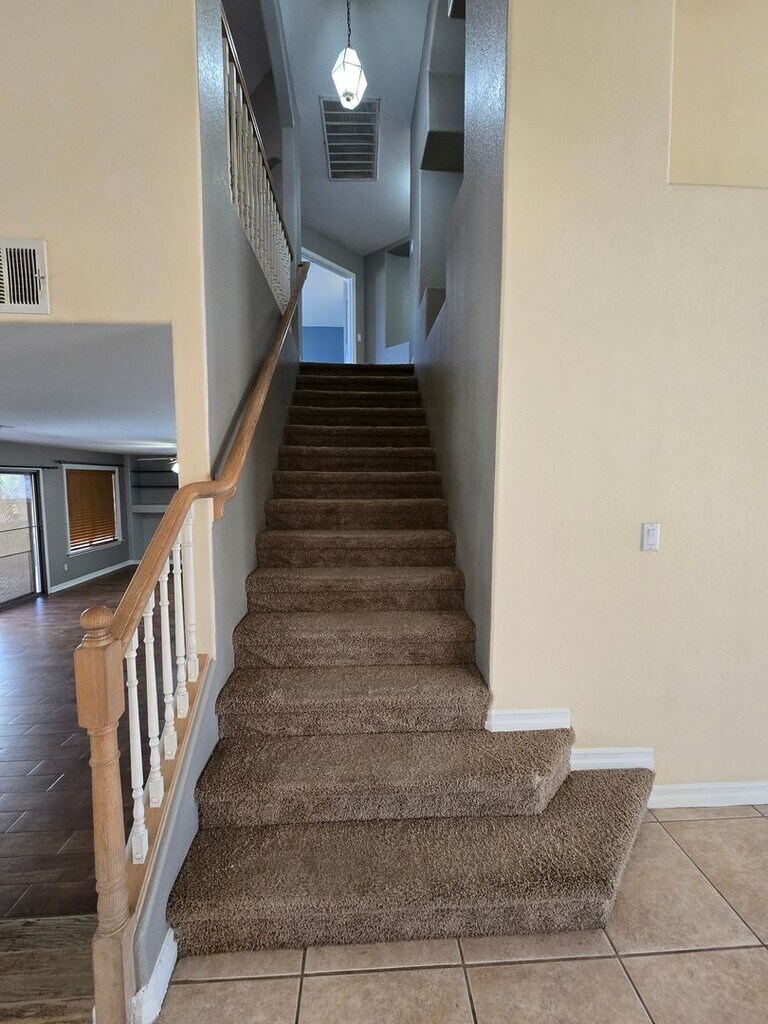 This beautiful 4-bedroom, 2.75-bath home with a 3-car garage offers the perfect blend of comfort and entertainment. Step inside to find elegant formal living and dining spaces that lead into a stunning kitchen with granite countertops, a center island, stainless steel appliances, and a cozy breakfast nook. The kitchen flows seamlessly into the family room, featuring a wet bar, a fireplace, and an entertainment center —perfect for relaxing or hosting. Downstairs, a versatile den can serve as a home office or guest bedroom. You will also find a 3/4 bathroom. Upstairs includes the spacious primary suite and additional bedrooms. Step outside to your private backyard oasis—complete with a sparkling pool, covered patio, built-in BBQ with refrigerator, and beautifully maintained landscaping. Please note that the rent includes a $100 charge per month for Sewer, Trash, and the Resident Benefit Packet (RBP) For more information, please call