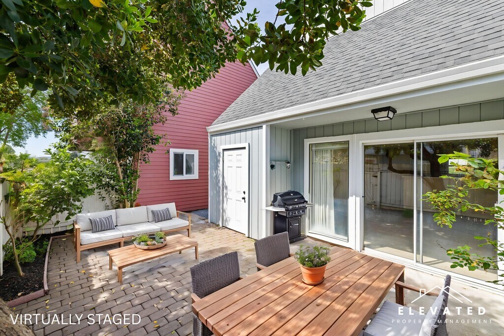 Tucked within the Windmill Farms community in Cotati, this well-maintained two-level townhome offers a functional layout, private outdoor space, and access to a variety of community amenities. The main level features tile flooring throughout and a comfortable living area with vaulted ceilings. A large sliding glass door opens to the back patio, creating an easy connection between indoor and outdoor living. The layout flows naturally from the living area into the kitchen and dining space. A coat closet, a convenient half bath, and a laundry closet are all located on the main level. The kitchen has been updated with quartz countertops, stainless steel appliances, and generous cabinet storage. A breakfast bar provides additional seating, and the kitchen opens to the main living area for an easy, connected layout. Upstairs, you'll find two bedrooms, both with good closet space, including one with a walk-in closet. The full bathroom features a shower over tub and updated finishes. The home offers two outdoor areas, a front patio at the entry, and a private fenced backyard patio with a paved surface and surrounding greenery. A secure exterior storage closet off the back patio provides additional storage space. Additional features include two designated parking spaces, one covered and one uncovered. Residents of Windmill Farms enjoy access to a community pool, tennis court, basketball court, and playground. Located near Oliver's Market, local restaurants and shopping, parks, the Cotati downtown square, the SMART train, and a short distance to Highway 101. A comfortable and functional home in a well-established Cotati community. Rental Details: - Rent: $2,400 - Security Deposit: $2,400 - Lease Term: 1 year lease - Pet Policy: Small dogs and cats are considered - Tenant is responsible for PG&E, water, and internet - Garbage/recycling service is included in rent Tenant Requirements: - Combined gross monthly income of at least 3x the monthly rent - Minimum FICO credit score of 700 - No evictions, bankruptcies, or collections - Positive rental history and verifiable landlord references from the past 5 years - Renters insurance required ($300,000 minimum liability) Available now. Contact us for a private showing. Elevated Property Management CA DRE #01786927