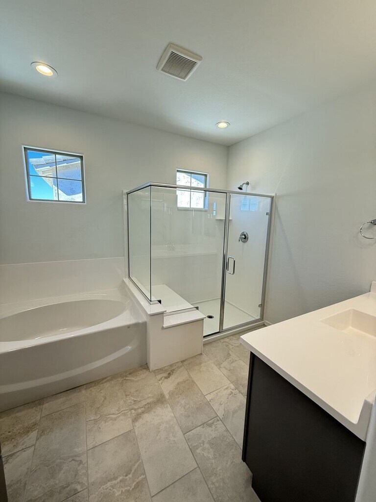 Coming In May! Stunning home in Hawes Crossing! This 4-bedroom, 3.5-bathroom home features a modern kitchen with quartz countertops, stainless steel appliances, maple cabinets with soft-close drawers, a sleek rectangular sink, under-cabinet LED lighting, and a custom backsplash. Additional highlights include a tankless water heater, paved driveway and front patio, and a garage with coated floors. The master suite offers his and her closets with built-in shelving, plus a luxurious ensuite with a separate shower and tub. Conveniently located just two houses down from the playground, with a community pool and pickleball courts coming soon! No smoking in or on property