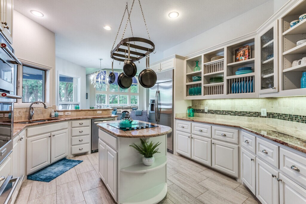 Welcome to your dream lakefront getaway on Lewisville Lake! This spacious 4-bedroom home combines luxury with relaxation, offering both a sparkling backyard pool oasis and direct waterfront access for endless fun. Step outside to enjoy the sand beach, soak in the tranquil lake views, or dive into exciting lake activities right from your backyard. The property features 3.5 bathrooms, a backyard pool and patio lounge, and direct lakefront access. Our home caters to both short-term and medium-term stays, making it an excellent choice for corporate housing needs. Whether you find yourself temporarily displaced from your home or require accommodation for your team during an extended project in our area, we provide a welcoming and comfortable "home away from home" experience. The fully equipped chef’s kitchen is designed for gatherings large and small, featuring stainless steel appliances, dual ovens, a fridge, freezer, stove, microwave, dishwasher, and a kitchen island with cooktop. The living room and family room offer cozy couches, curated décor, a flat-screen TV, high-speed Wi-Fi, lofted ceilings, and expansive windows. Dining areas include a breakfast nook for six and a formal dining table for eight. Free parking is available for three cars in the garage and additional driveway parking. We welcome house-trained pets with a non-refundable pet fee of $150 per pet, with a maximum of one pet per stay. An additional nightly rate applies for more than six guests, with a $29/night fee for each additional guest. Experience the perks of lakeside living in Lakewood Village! Take in the natural beauty and unwind with some local fun. Be sure to check out community amenities such as Lewisville Lake, one of the largest lakes in North Texas, perfect for fishing, skiing, kayaking, and relaxing. Enjoy parks, nature preserves, and hiking trails, offering opportunities for hiking, birdwatching, and exploring the natural beauty of the area. Golfing is available at top-rated golf courses, such as The Tribute Golf Club and Old American Golf Club. Local attractions include wineries, vineyards, and community events. If you arrive by car, free parking is available, and Uber and Lyft are only minutes away 24/7. We do not allow parties or large unauthorized gatherings of any sort at our property. Only registered guests are allowed over while renting our property. Noise level monitoring is in place to comply with local noise ordinances and occupancy regulations. Smoking of any type is not allowed, and violations are subject to a $450 fine plus the cost to clean, deodorize, and repair damages. Check-in is at 4pm and checkout is at 10am. Small low-key gatherings are allowed only upon request and approval in advance. The fireplace and spa jets are currently inoperable. We offer plenty of body towels for your use, but feel free to bring your own pool towels if you'd like. All smart TVs are equipped with streaming apps like Netflix, Amazon, and YouTube, and guests are welcome to login with personal accounts. The primary suite includes a king bed, sitting area, workstation, and ensuite spa bathroom. A laptop computer is not included. [SI]