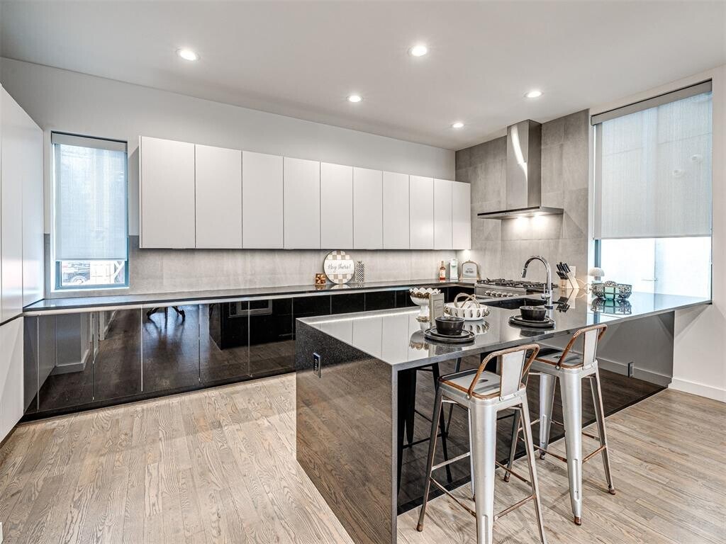 PRICE REDUCTION / LEASING SPECIAL Second Month’s Rent HALF OFF with an APPROVED application. Must apply by 01/15/25. Modern luxury meets urban living in this custom four-level contemporary home located in Oklahoma City’s highly sought-after SOSA District. This upscale residence welcomes you with illuminated pathway lighting and luxury upgrades throughout. The first floor offers a bright entryway with natural light and a full-size bedroom with closet—ideal for a guest room or home office—plus a full bathroom. The second floor showcases a spacious living area with floor-to-ceiling windows and a chef’s kitchen featuring a built-in Sub-Zero refrigerator,3cm black quartz countertops,commercial-grade dishwasher,and Fisher & Paykel 4-burner gas range. The third floor includes an additional bedroom with a full bathroom and closet. The primary suite overlooks the downtown skyline and features an oversized walk-in shower with dual faucets,double custom modern vanities with 3cm black quartz,and a California-style closet—designed for comfort,relaxation,and stunning views. The expansive 842 sq. ft. rooftop deck is perfect for entertaining,offering skyline views and full capability for a natural gas grill,outdoor kitchen setup (water and drainage installed),hot tub,and outdoor furnishings. Appliances Included (AS-IS): Stainless steel 4-burner gas range,double-drawer dishwasher,microwave,refrigerator,washer,and dryer. Property is offered for sale or lease. Pets considered on a case-by-case basis. All residents are enrolled in the Resident Benefits Package (RBP) for $45/month,including renters insurance,credit-building for timely rent payments,$1M identity protection,HVAC air filter delivery (where applicable),resident rewards,and more. Details provided upon application. DISCLAIMER: Property is staged. Furniture will be removed prior to move-in. Property is not furnished.