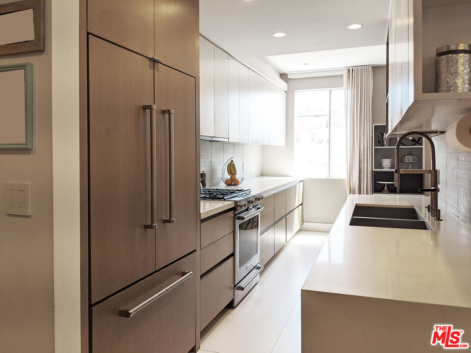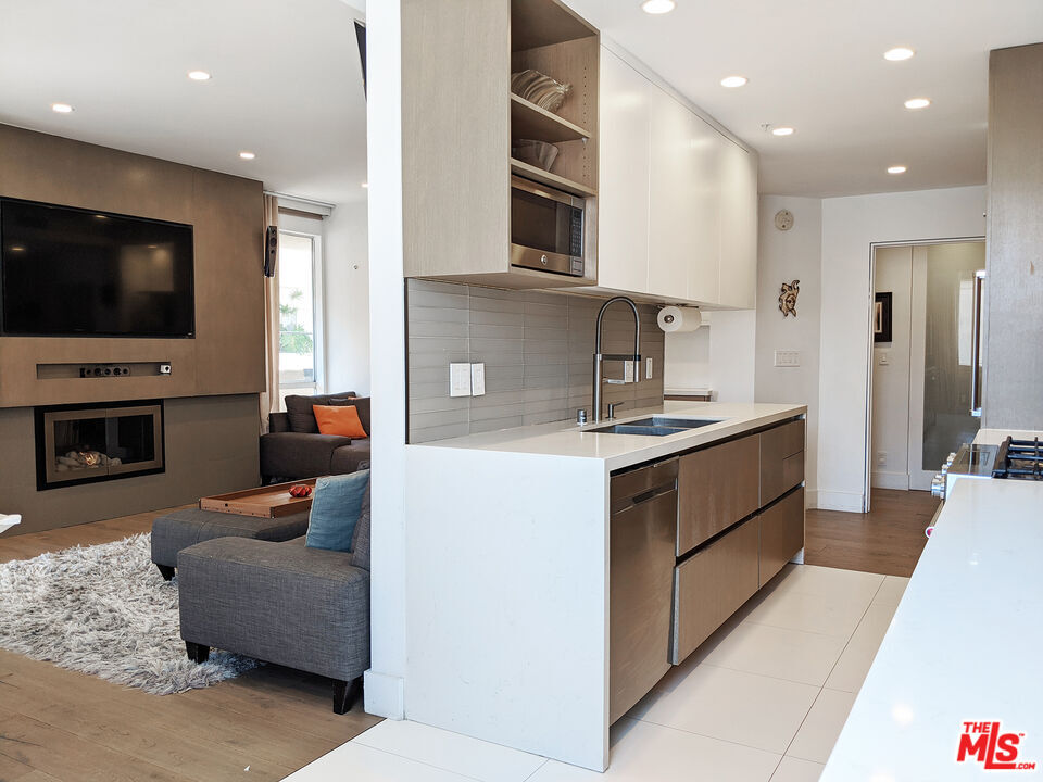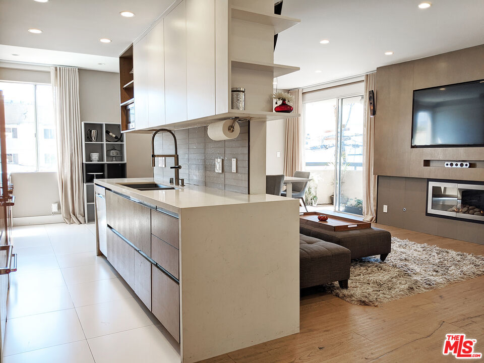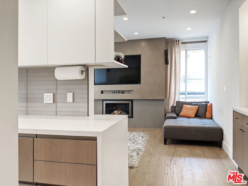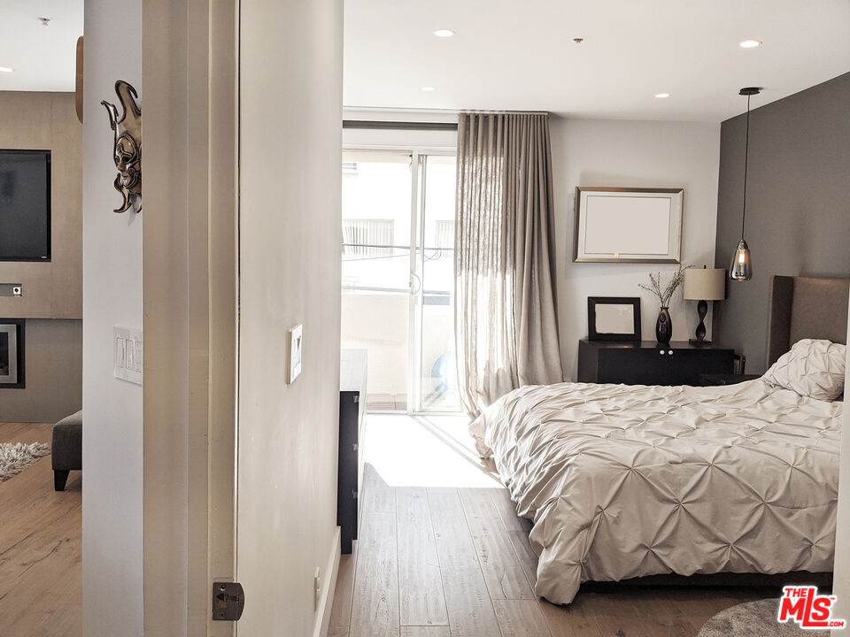 Completely remodeled stunning 2 bed 2 bath condo for rent in an ideal location. Features include wide planked hardwood floors, porcelain and limestone tiles, over-sized laundry room & custom closets in both bedrooms with great room for storage. Unit is well-lit with 9 foot ceilings, recessed LED lighting throughout, integrated home audio/video, remote control roller blackout and fabric shades, gorgeous fireplace, Nest thermostat, and WiFi capable lights. Kitchen has ceasarstone counters, paneled fridge, new appliances, and soft-close drawers. Master bathroom includes huge limestone shower with dual vanities and private lav. Long balcony along back of unit is lined with wood decking. Building has recently remodeled hallways, fully upgraded elevator equipment and cabin, new roof, and security system. Plenty of guest parking. Just steps to nearby salons and restaurants on Robertson Blvd, Cedars Sinai, West Hollywood and La Cienega Park. MLS# 25610331