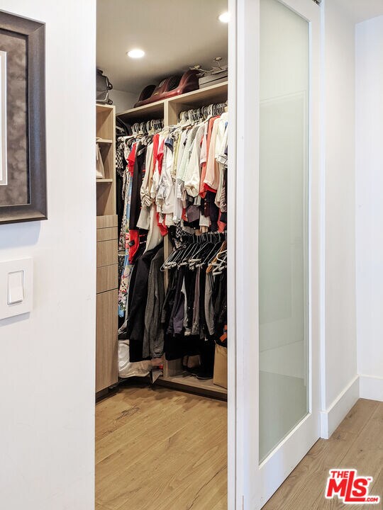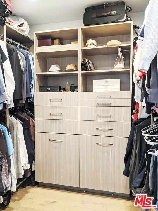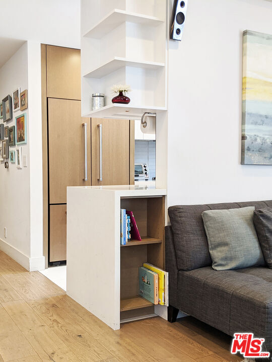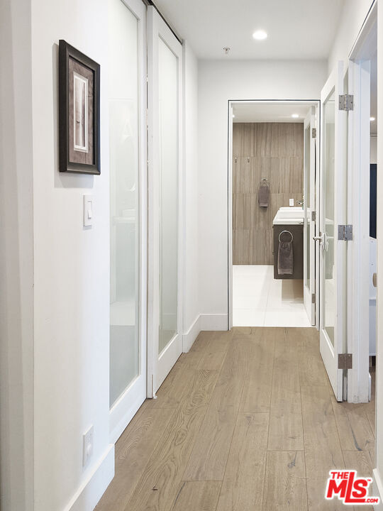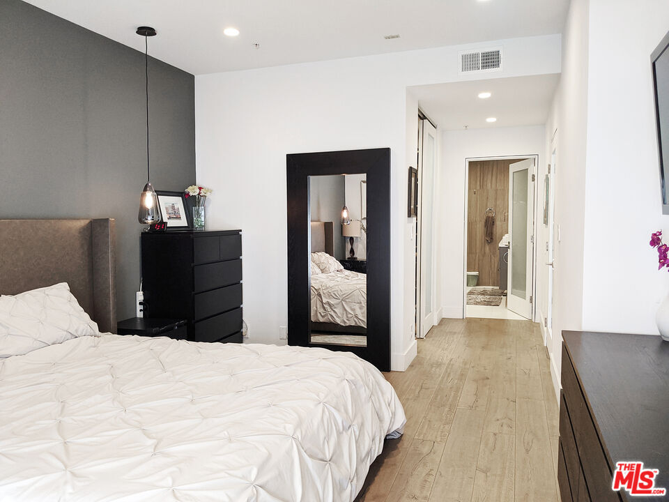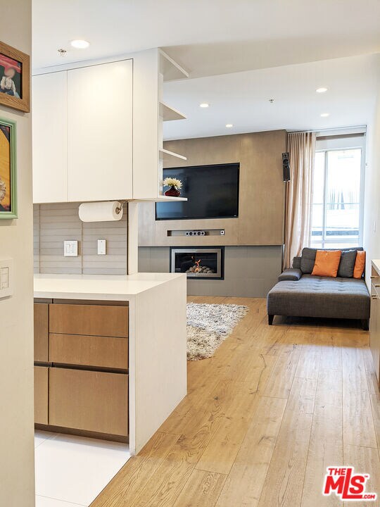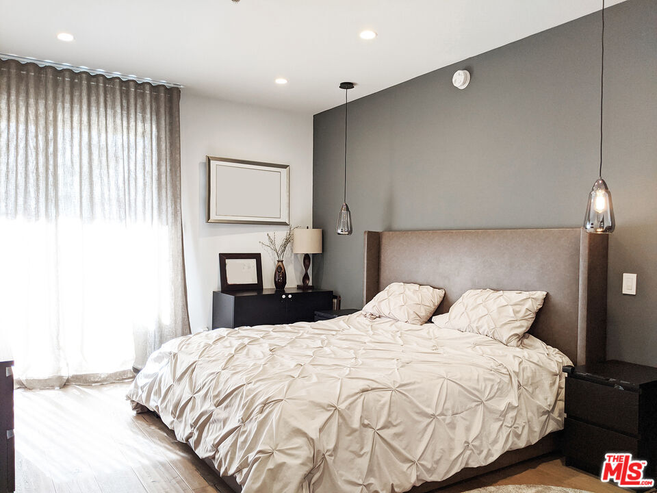 Completely remodeled stunning 2 bed 2 bath condo for rent in an ideal location. Features include wide planked hardwood floors, porcelain and limestone tiles, over-sized laundry room & custom closets in both bedrooms with great room for storage. Unit is well-lit with 9 foot ceilings, recessed LED lighting throughout, integrated home audio/video, remote control roller blackout and fabric shades, gorgeous fireplace, Nest thermostat, and WiFi capable lights. Kitchen has ceasarstone counters, paneled fridge, new appliances, and soft-close drawers. Master bathroom includes huge limestone shower with dual vanities and private lav. Long balcony along back of unit is lined with wood decking. Building has recently remodeled hallways, fully upgraded elevator equipment and cabin, new roof, and security system. Plenty of guest parking. Just steps to nearby salons and restaurants on Robertson Blvd, Cedars Sinai, West Hollywood and La Cienega Park. MLS# 25610331