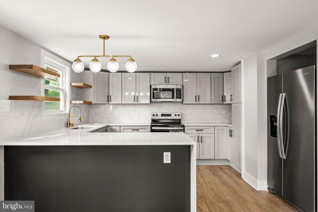 Welcome to 8255 Mertztown Road, Unit A — a stunning, fully remodeled home blending luxury finishes with modern functionality. This 3-bedroom, 2-bath residence has been thoughtfully designed to offer both style and comfort, featuring a spacious open-concept layout ideal for today’s lifestyle. The gourmet kitchen boasts quartz countertops, stainless steel appliances, custom cabinetry, and designer lighting — perfect for cooking, entertaining, or simply enjoying your morning coffee. The two full bathrooms are beautifully appointed with elegant tile work, contemporary vanities, and sleek fixtures, offering a spa-like retreat for both homeowners and guests. Natural light pours into every room, highlighting the quality craftsmanship and attention to detail throughout the home. Set on a peaceful lot with easy access to major routes, shopping, and dining, Unit A offers the best of both worlds — tranquility and convenience. Whether you're looking for a move-in ready primary residence or a versatile investment, this property delivers exceptional value and design.