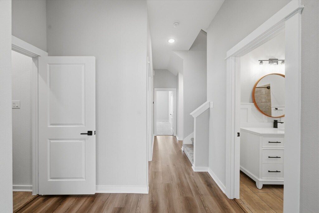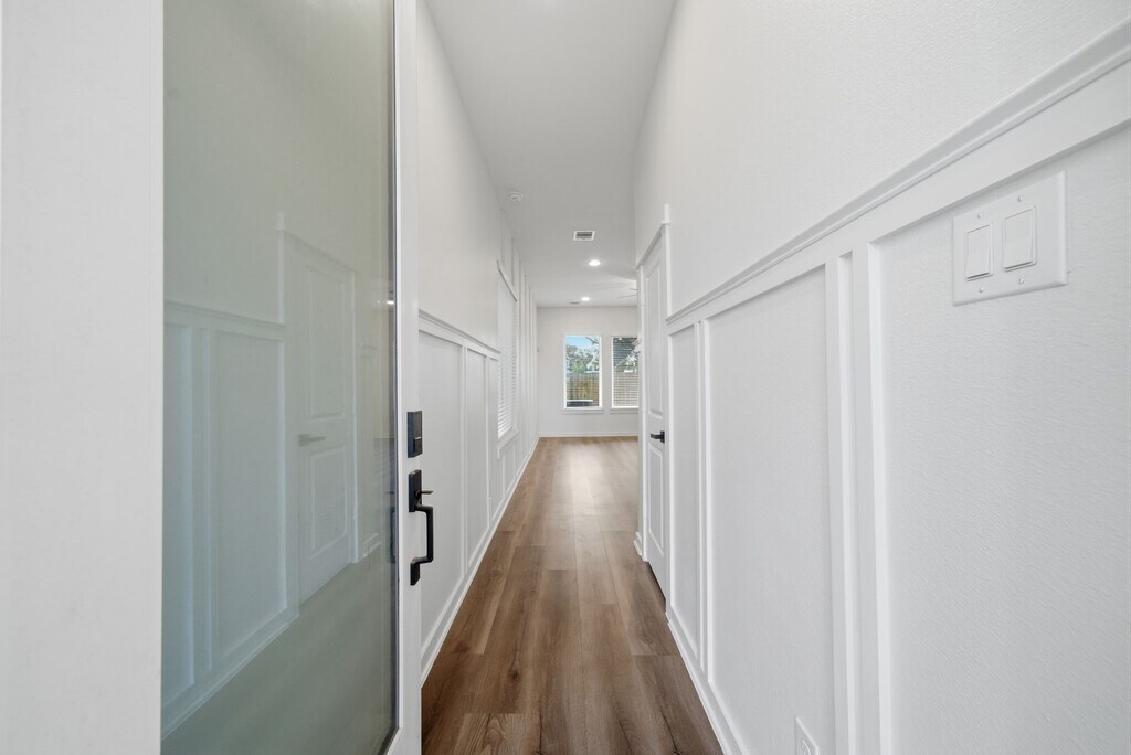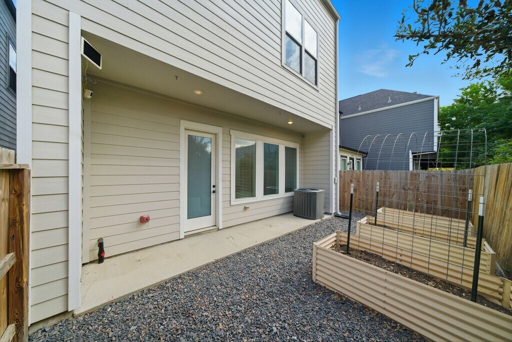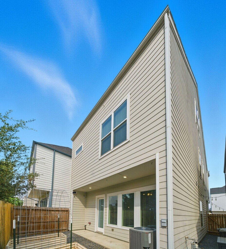 Experience refined living in this gated three-story residence where thoughtful design and modern comfort intertwine. The first floor greets you with an open living area,a striking kitchen with green cabinetry,a welcoming dining space,and a mudroom with a half bath. Step outside to enjoy prepped garden beds and a shaded side yard ideal for storage or quiet retreat. On the second floor,four well-appointed bedrooms surround a convenient laundry room,while the primary suite stands out with marble-inspired finishes,a soaking tub,walk-in shower,and an L-shaped closet with soaring ceilings. The top-floor flex space offers versatility for a media lounge,home office,or yoga studio. Refrigerator,washer,and dryer included. Located about 20 minutes from Downtown and within 30 minutes of the Galleria,River Oaks District,and Medical Center,with Hardy Toll Road less than 5 minutes away and METRORail transit about a mile for convenient commuting. Crafted for a truly elevated lifestyle! MLS# 90506180