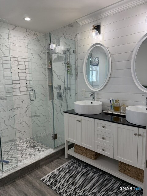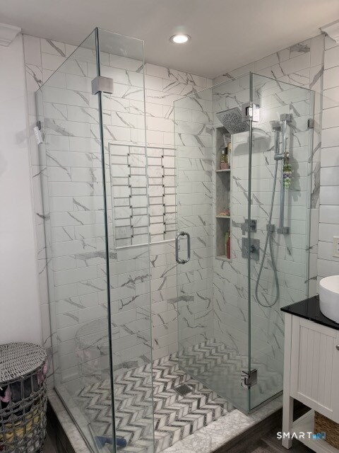 Call for Availability - Welcome to this stunning 5-bedroom raised ranch in Orange, Connecticut! Included with the lower finished level affords you a luxurious 2860 square feet of royal living. This fully remodeled home boasts a brand-new kitchen with elegant quartz countertops, bright white cabinetry, and beautifully coordinated finishes. Enjoy magazine-worthy design with hardwood floors throughout, thoughtfully chosen accent paneling, stylish black-hinged doors, and coordinated lighting and ceiling fans. The bathrooms are spa-like, featuring tiled showers with smooth stone floors and sleek glass doors. Every detail has been designed for comfort, style, and a touch of luxury. Don't miss out on this exceptional home! MLS# 24153452