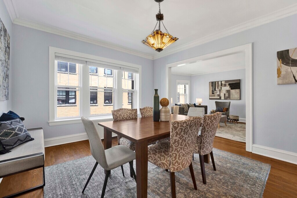 Beautiful & bright,2 bedroom,2 bath vintage unit with heated garage parking and in-unit laundry near Main Street in Evanston,available now! Come home to this warm and inviting unit,which features hardwood floors throughout and generous room sizes,all in a stately,professionally managed courtyard building. There's an updated kitchen with quartz countertops,Kohler farmhouse sink and Kitchen Aid stainless-steel appliances (including dishwasher),which leads to your formal dining room,which then connects to your living room. A split bedroom floor plan is perfect for guests/privacy/roommates,with your king-sized primary suite (with organized,walk-in closet) tucked to one side of the home....and your guest bedroom (which also fits a king-sized bed),with adjacent,updated bathroom. Crown molding and private storage complete this home! A+ location convenient to the beach/lake,parks,school...and a commuter's dream near Metra and the Purple Line "L" train. Dining,shops and more await in this perfect location that's also convenient to both Northwestern and Loyola Universities and Downtown Evanston. No Smoking,No Pets. Monthly rent includes heat,gas and water. Welcome home! MLS# MRD12490313 Based on information submitted to the MLS GRID as of [see last changed date above]. All data is obtained from various sources and may not have been verified by broker or MLS GRID. Supplied Open House Information is subject to change without notice. All information should be independently reviewed and verified for accuracy. Properties may or may not be listed by the office/agent presenting the information. Some IDX listings have been excluded from this website. Prices displayed on all Sold listings are the Last Known Listing Price and may not be the actual selling price.
