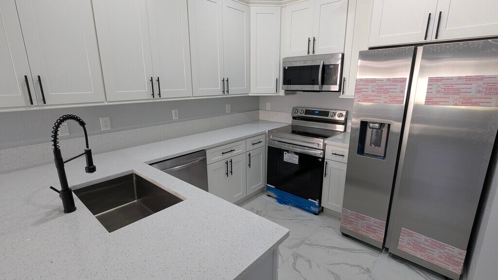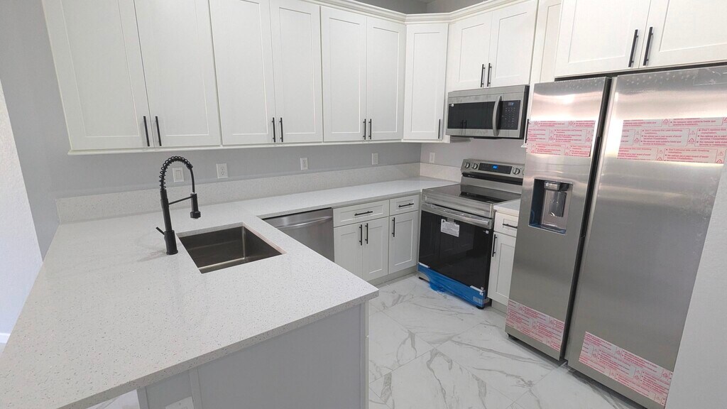 First Months Rent and One month Security to move in. Completely remodeled from top to bottom! Beautiful tile flooring throughout,brand-new kitchen featuring granite countertops,soft-close all-wood cabinets with crown molding,and stainless steel appliances. Fresh paint on all walls,ceilings,and doors,plus new ceiling fans in every room. Epoxy-coated garage floor adds a polished finishing touch. Located in highly desirable Bradford Place with a great landlord. Move-in ready! First Months Rent and One month Security to move in. MLS ID R11119812