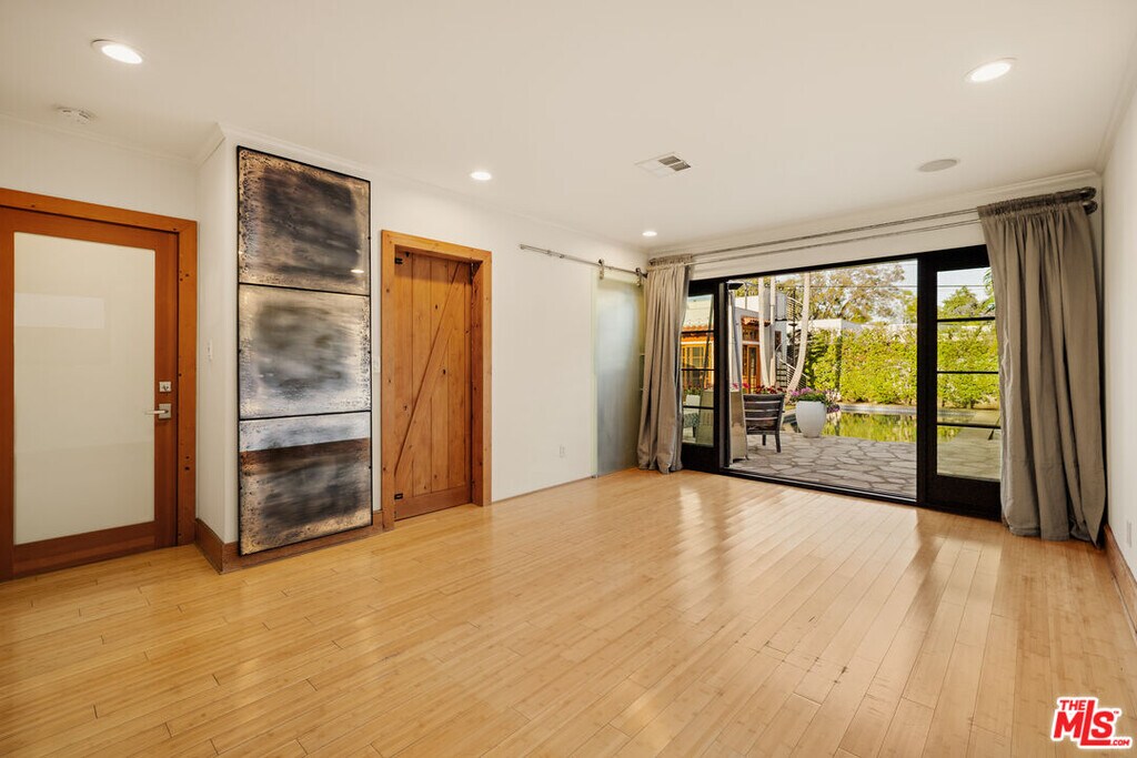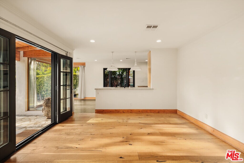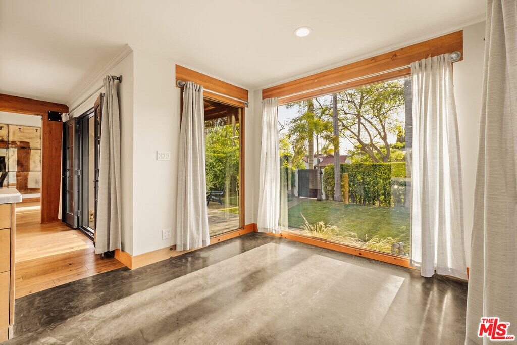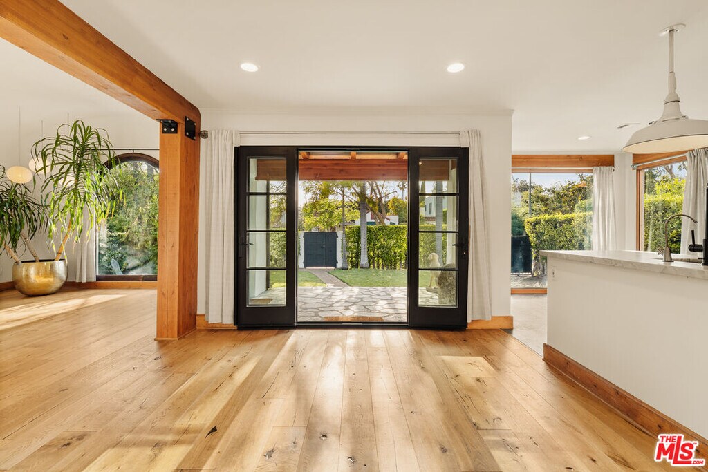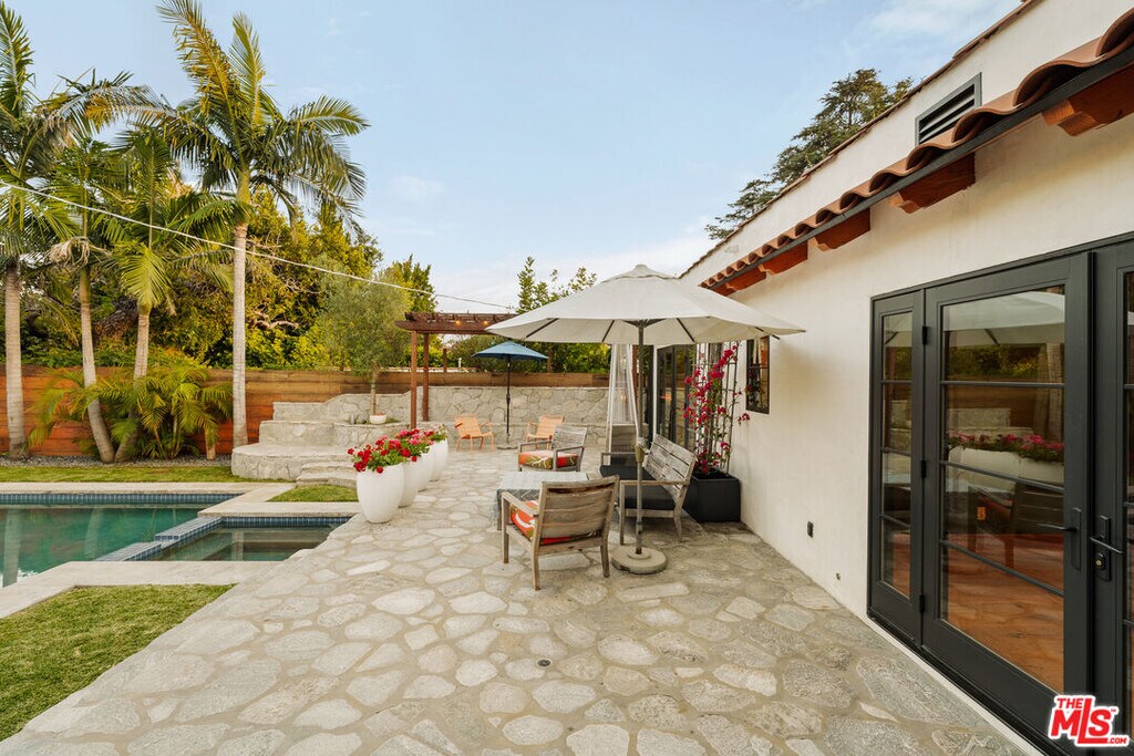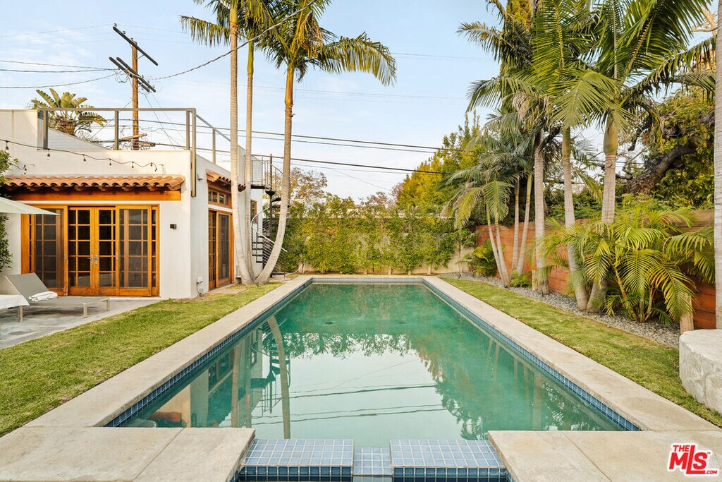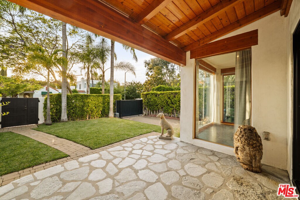 Gated Redone Spanish on a prime WeHo-adjacent block. Single-level with arched windows, barreled ceilings, and hardwood floors throughout. Remodeled kitchen with high-end appliances, marble counters, and polished concrete floors. Private front patio with fire pit; den opens to a resort-style pool and dining area for true indoor/outdoor living. Both baths fully updated. Certified by renowned feng shui consultant Angi Ma Wong. Walkable to Melrose Design District, Croft Alley, and the best of West Hollywood. MLS# 26736937