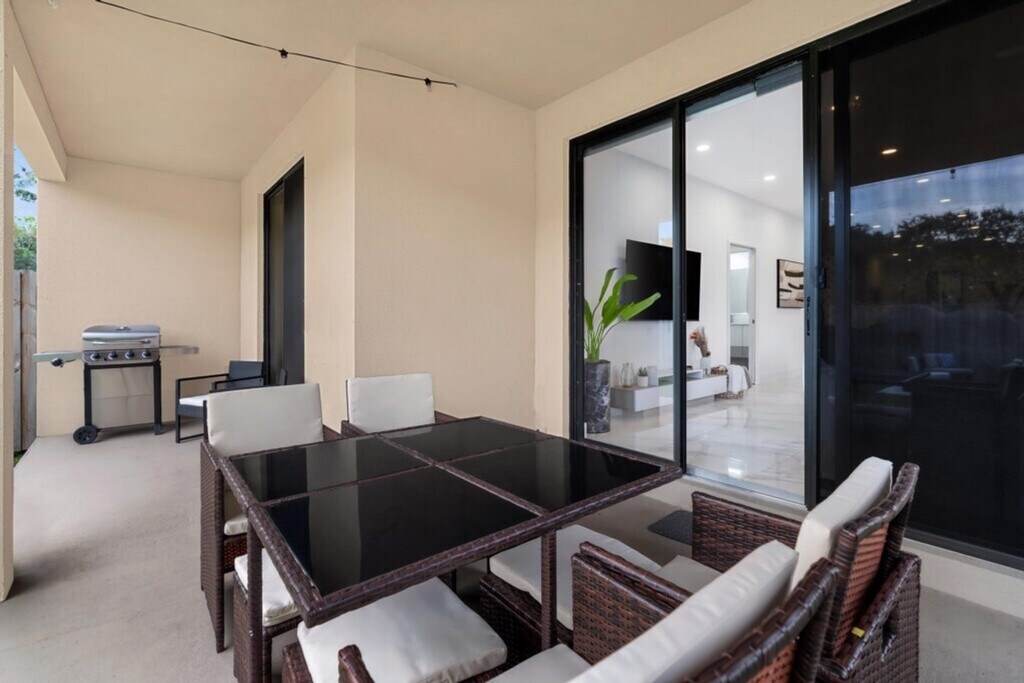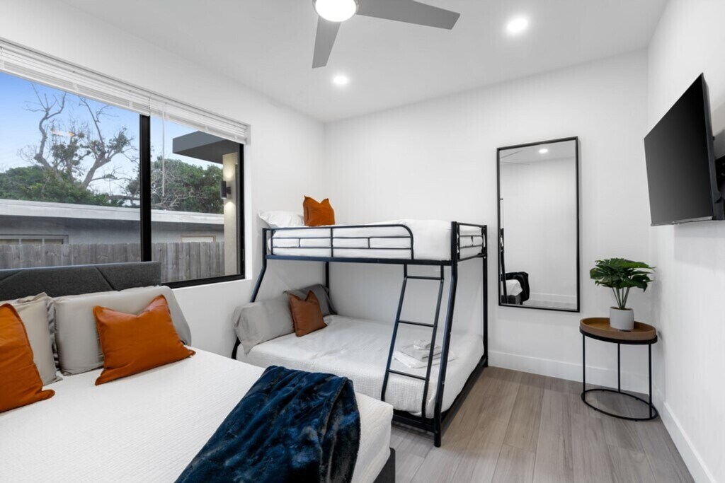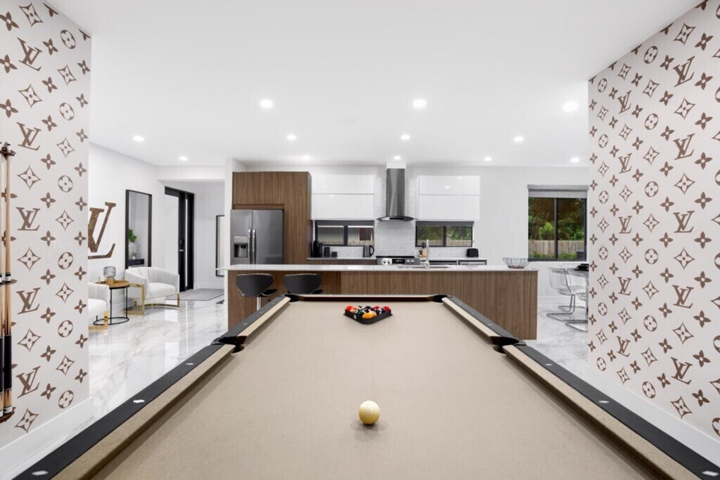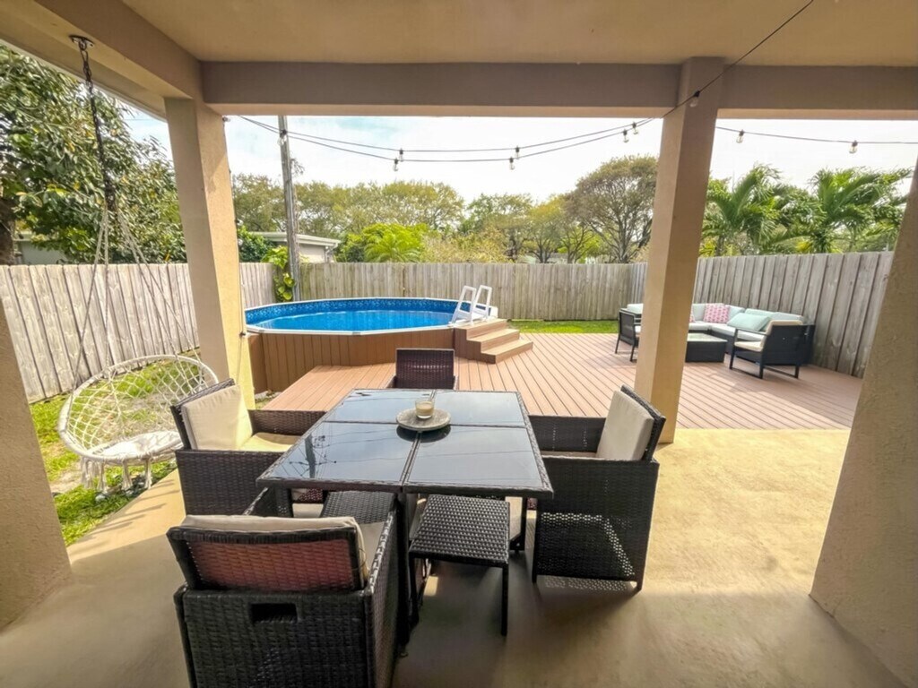 Welcome to Golden Fox, nestled in the heart of Fort Lauderdale. This luxurious home boasts three elegant bedrooms and two and a half lavish bathrooms, spanning 1,965 sq ft on a 5,362 sq ft lot. It features an exquisite private backyard haven, fully fenced, complete with a pristine pool, a BBQ for gourmet grilling, and ample space for sunbathing under the Florida sun. This home offers a private backyard with a large heated swimming pool, a state-of-the-art, fully equipped kitchen, and a BBQ and ping pong table. Enjoy fast WiFi and free parking for two cars. The master bedroom includes a king bed, en-suite with modern amenities, dual basin, direct pool access, ample wardrobe, and ceiling fan. The second and third bedrooms are set with two queen beds, one double bed, and one bunk bed (two twins), all offering garden vistas and overhead fans. The main hall provides additional bedding for guests. The guest bathroom features a single basin, tub, toilet, and essentials, while the powder room includes a single basin and a toilet. Outdoor facilities include a large pool, BBQ grill, open-air seating, sunbathing stations, and hammocks. The kitchen and dining area come with contemporary appliances, a wine fridge, and a dining set-up for up to nine guests. The living room is equipped with a 65” smart display, arcade game, and foosball. A free washer-dryer is available in the laundry room. Additional features include 600 Mbps WiFi, cooling, smart tech, USB docks, and safety features. Driveway parking for up to two cars is available during your stay. Nestled in serene Croissant Park, this spacious abode is moments from lively Las Olas, Downtown, and the beach. It is just nine minutes from sun-kissed beaches and a mere six minutes to Las Olas Blvd, brimming with exquisite dining and lively bars. You will have the entire property to yourself. This fully fenced one-floor property is located in the Croissant Park neighborhood, just minutes away from Las Olas, Downtown, and the beach. Smart check-in is available with a touch-screen door lock. Check-in is after 4:00 PM and checkout is at 11:00 AM. Quiet hours are between 10 PM and 7 AM. Smoking is not allowed inside the house or near open doors and windows. No parties or events are allowed, and no unauthorized persons are permitted. Garden maintenance is done once every two weeks, and our staff collects and returns the trash bins in the driveway twice a week. [SI]