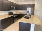 NEWER 2021 Build. This spacious 1715 sq ft home features 3 bed rooms and an office room which can be a 4th bed room and 2 bath,has been tastefully upgraded with dark cabinetry,stainless steel gas appliances,Granite Kitchen Counter tops and upgraded tile throughout,natural paint,window blinds,carpet in the bedrooms only,large open living room. Low maintenance back yard with artificial turf,pavers and gravel. Conveniently located in the heart of Casa Grande,this beautiful community has easy access to shopping,dinning and parks. Close to Lucid,Nicola and other retailers. Tenant responsible for all utilities. Renters insurance required.