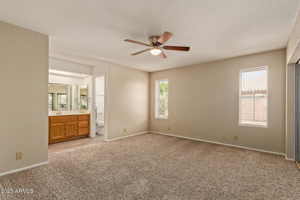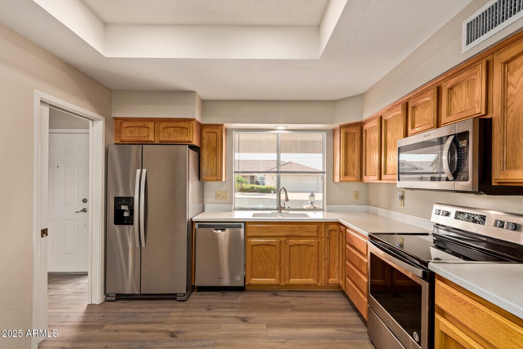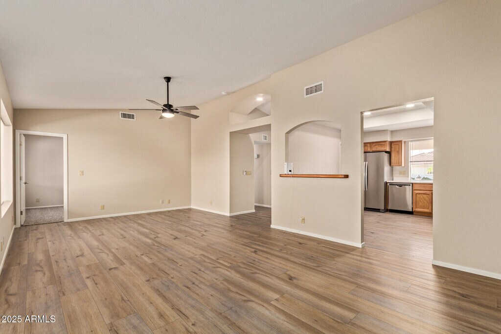 Beautifully updated 2 bed + bonus room,2 bath home in Sunland Village East! Freshly painted with new luxury flooring,quartz counters,and stainless appliances,this home is truly move-in ready. The light and bright kitchen opens to spacious living and dining areas with vaulted ceilings. The split floor plan provides a private primary suite,while the versatile bonus room is perfect for an office,crafts,or guest space. Step outside to a covered patio and easy-care yard for year-round enjoyment. Located in a premier 55+ community with resort amenities including golf,tennis,pickleball,pools,fitness center,and endless social activities. Don't miss this one!