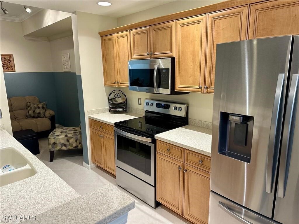 AVAILABLE FOR OFF SEASONAL RENTAL! APRIL - DECEMBER 2026. Experience your ideal getaway in this stunning 2-bedroom,2-bath condo with a covered carport and ample guest space,located in the sought-after Terraces of Riverwalk community. This immaculate home is perfectly positioned in a vibrant central location,with all your needs just moments away. Step inside this inviting unit,featuring a spacious primary bedroom with a luxurious king-size bed,a walk-in closet with built-in storage,and an en-suite bathroom complete with a double vanity and walk-in shower. Your guests will feel right at home in the bright guest bedroom,also with a king-size bed,plus easy access to the guest bath. There’s even a cozy nook by the kitchen with a pull-out queen-size bed for additional guests. The kitchen is a chef’s dream,flooded with natural light and equipped with modern stainless-steel appliances,elegant maple cabinets,a convenient breakfast bar,and a pantry for all your culinary essentials. The open living room flows seamlessly to a screened lanai,offering peaceful views of the wooded private preserve—perfect for sipping your morning coffee or unwinding in the evening. Enjoy added peace of mind with impact-resistant windows and doors. This condo also includes a dedicated laundry room with a full washer and dryer,making chores effortless. The Terraces of Riverwalk community boasts a wealth of amenities to enhance your lifestyle. Dive into the sparkling resort-style pool,relax in the soothing spa,stay fit in the well-equipped fitness center,or socialize in the inviting clubhouse. Spend leisurely afternoons in the library,challenge friends in the billiards room,or fire up the BBQ for a fun cookout—there’s something for everyone! Located just minutes from pristine beaches,fantastic shopping,and diverse dining options,everything you desire is within easy reach. Don’t miss this exceptional opportunity to enjoy a seasonal rental that combines comfort,convenience,and an active lifestyle. Make this stunning condo your home away from home!