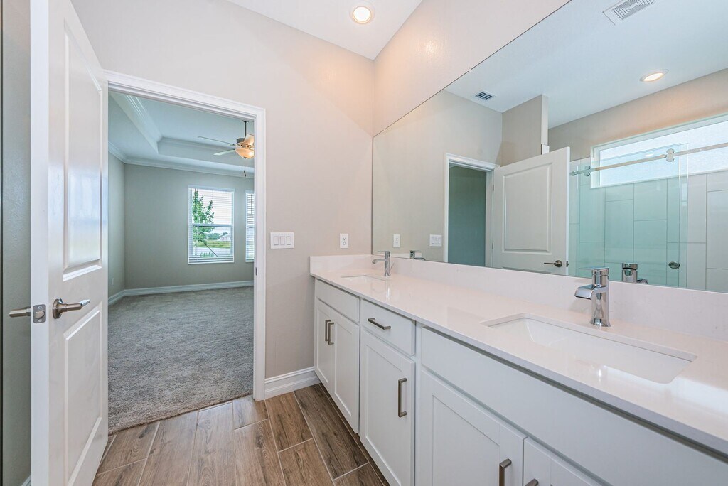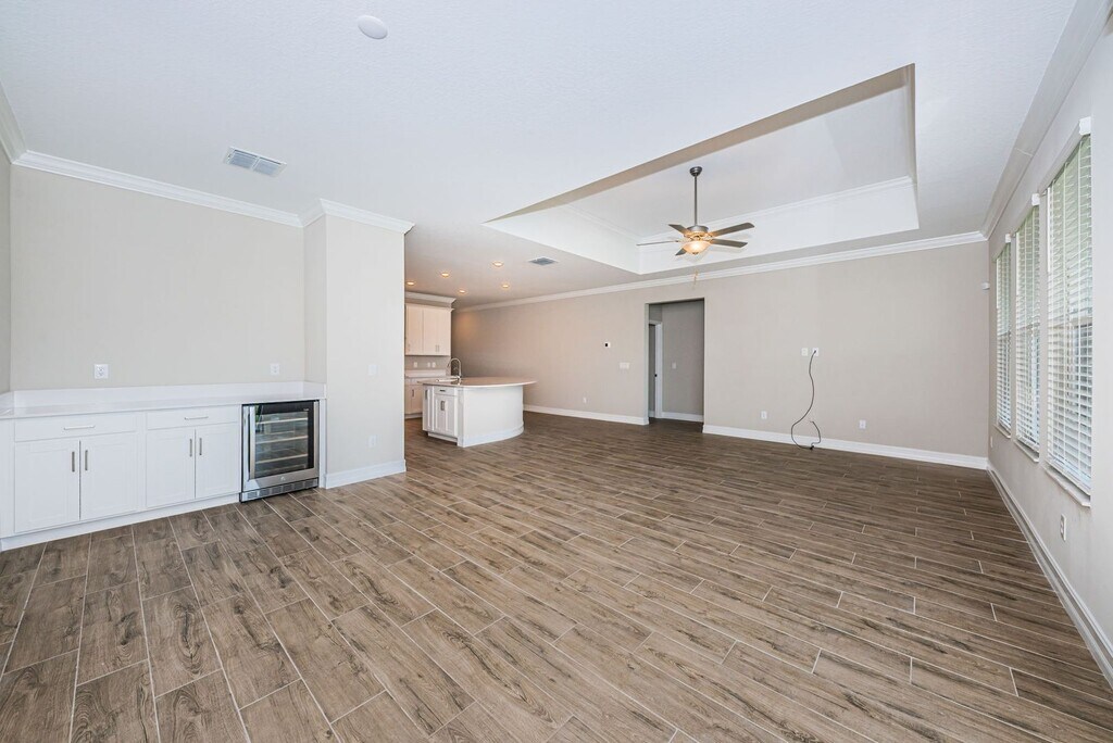 WELCOME HOME! DON'T MISS THIS BEAUTIFUL ASPEN FLOOR PLAN BY LENNAR, LOCATED ON A PREMIUM LOT WITH A POND VIEW IN BRYANT SQUARE. WITH OVER 1,800 SQUARE FEET OF LIVING SPACE, THIS NEWER CONSTRUCTED HOME FEATURES 3 BEDROOMS AND 2 BATHROOMS, AND WITH ITS OPEN FLOOR PLAN IS PERFECT FOR ENTERTAINING. WOOD-LOOK TILE FLOORING THROUGHOUT, AND MODERN PAINT COLORS. THE CHEF'S KITCHEN IS LIGHT & BRIGHT AND HAS A HUGE ISLAND, QUARTZ COUNTERS, STAINLESS STEEL APPLIANCES, STAINLESS RANGE HOOD, DOUBLE OVEN AND OVERLOOKS THE FAMILY ROOM AND CAFE AREA MAKING IT EASIER TO BRING EVERYONE TOGETHER FOR MEALS AND FAMILY TIME. CAFE AREA FEATURES BUILT-IN BUFFET WITH ADDITIONAL CABINETS PLUS A BUILT-IN WINE FRIDGE. ENJOY YOUR MORNING COFFEE ON THE SPACIOUS SCREENED BACK PATIO, WHILE TAKING IN THE POND VIEWS. THE OWNER'S SUITE IS SPACIOUS AND FEATURES AN ENSUITE BATH WITH DUAL SINKS, TILE SHOWER AND OVERSIZED WALK-IN CLOSET. THE GUEST ROOMS ARE BOTH NICELY SIZED. COMMUNITY AMENITIES INCLUDE COMMUNITY POOL, PLAYGROUND, PARK AND WALKING TRAILS. THIS HOME IS IN A GREAT LOCATION NEAR AIRPORTS, BEACHES, PARKS, SHOPPING, RESTAURANTS, MEDICAL, GOLF COURSES AND MUCH MORE . MUST SEE TO APPRECIATE! SCHEDULE A SHOWING TODAY...