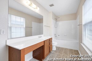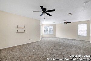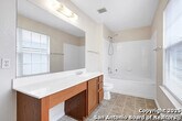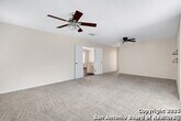 Welcome to this inviting two-story brick-front home located in the desirable Park Place subdivision. Step inside to discover laminate flooring throughout the first floor and a thoughtful layout that balances style and functionality. The home offers both a separate dining area and a cozy breakfast nook, complemented by a well-appointed kitchen featuring an island, ample cabinet space, and a refrigerator for added convenience. Downstairs also includes a spacious utility room and a walk-in pantry for optimal organization. Upstairs, the laminate flooring continues into a versatile loft-ideal for relaxing, entertaining, or creating a dedicated workspace. All bedrooms feature soft carpeting for added comfort, and the primary suite stands out with its generous proportions and a beautifully finished en suite bath. Step outside to enjoy a private backyard complete with an expansive patio and mature trees, perfect for unwinding or hosting gatherings. With easy access to Lackland AFB, the 151 business corridor, Sea World, and nearby shopping and dining, this home offers both comfort and convenience in a prime location.