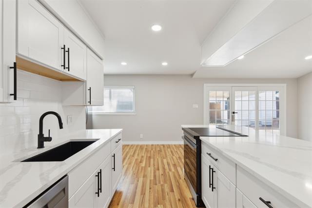 Stunning & freshly remodeled bungalow in the HEART OF RICHARDSON! 3 bedroom, 2 bathroom, 2 car garage with vaulted ceilings and open concept kitchen. Flexible floorplan with options for multiple living spaces or spacious formal dining. Modern kitchen with separate laundry closet, marble look quartz counter tops, and stainless-steel appliances with FRIDGE INCLUDED! Spacious primary bedroom with walk in closet and hotel like en suite bathroom with designer tile shower enclosure. Peaceful backyard features a large covered patio, fully enclosed with wood fence, spacious grass area, and bonus storage shed! The whole property has been upgraded with fresh paint, finishes, hardware, and flooring - ready for you to make it home! Fantastic location in exemplary Richardson ISD Schools, walkable to neighborhood park featuring tennis courts, baseball fields, and playgrounds. Also, close proximity to neighborhood swim club and UTD. Pets are case by case.