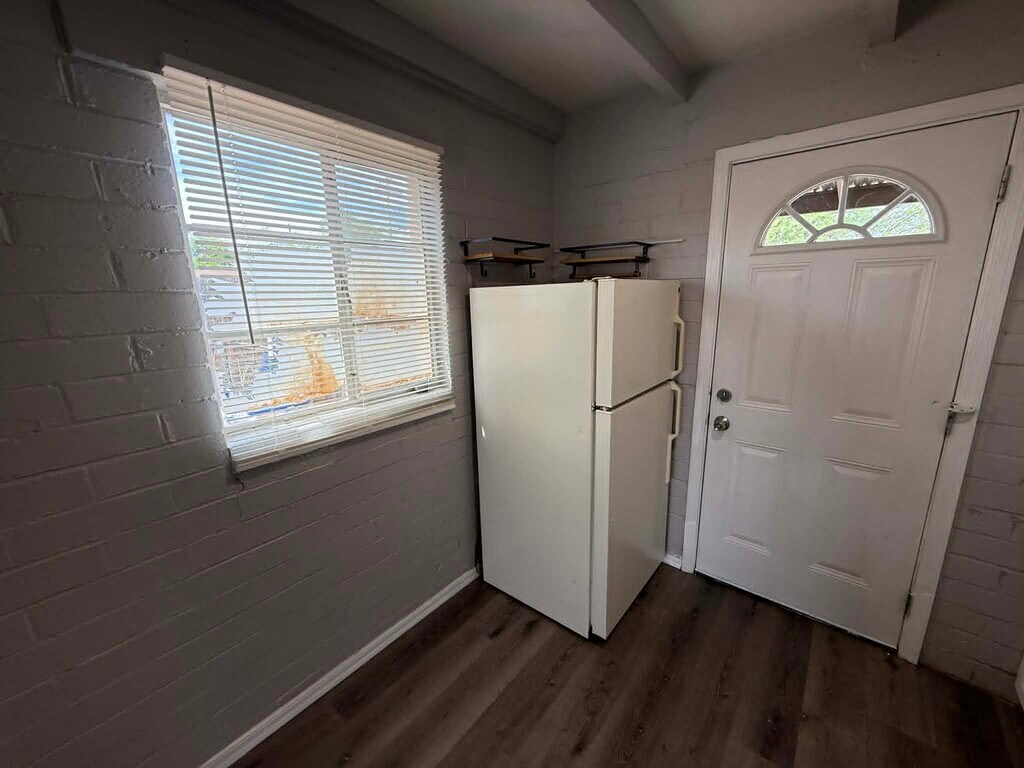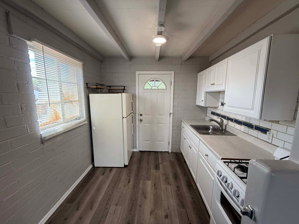 Well-located 2 bedroom, 1 bathroom home offering approximately 800 sq. ft. of comfortable living space in central Tucson. This home features a recently updated kitchen equipped with a refrigerator and stove, along with a functional layout designed for everyday convenience. Enjoy vinyl flooring, air conditioning, and heating for year-round comfort. The property also includes a private fenced backyard, perfect for outdoor relaxation or pets. Additional features include in-home washer and dryer, laundry hookups, window coverings, and ample storage space. Conveniently situated near parks, shopping, dining, and more, this home offers easy access to everything Tucson has to offer. Pet-friendly and move-in ready, schedule your showing today!