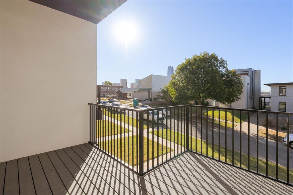 Your slice of our beautiful Oklahoma City skyline awaits,greeting you on your bedroom deck each morning! Explore all that Downtown OKC and the lively SOSA district have to offer from the comfort of this sophisticated townhome boasting soaring ceilings,light-filled rooms and an unbeatable location!! Entering this home you'll find an impressive living space featuring a fireplace,spacious dining area and fabulous entertaining kitchen with a walk-in pantry. Just off the sunny entry is a convenient powder room for guests. Double height ceilings continue on the second floor with an oversized primary suite featuring separate closets and a luxurious ensuite with soaking tub and double vanity. Through large sliding glass doors you'll find your private walk-out deck with stunning South-facing views. Offering plenty of space for a seating area this room could easily become your favorite hideaway in the middle of it all! The secondary bedroom features a large walk-in closet and is perfect for guests or a quiet home office. A full hallway bath and convenient upstairs laundry complete the second floor. The private backyard is full of possibilities,from garden oasis to secluded relaxation zone. This space seamlessly connects the home to a two-car garage at the rear of the property for easy,secure access.