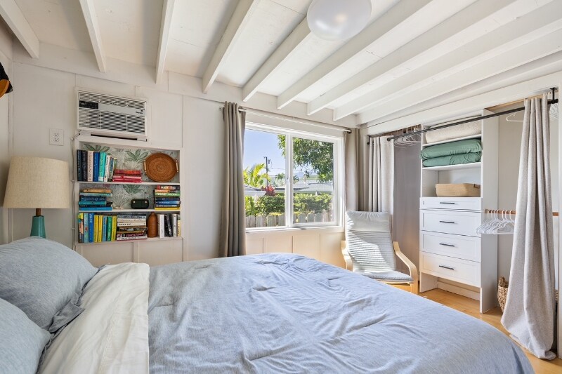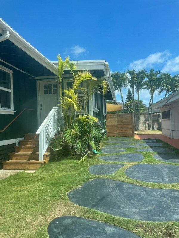 Property Id: 2395714 This house is down a quiet, private lane of Oneawa St with a few other neighbors in a convenient location close to the beach, the center of town, MCBH and the highways. This recently remodeled home has 2 beds, 2 baths, and a small tropical backyard. The living room has a split AC unit and both bedrooms have wall AC units and ceiling fans. There is a stacked washer and dryer inside the unit. There are new energy efficient Milguard jalousie windows in the common spaces and double paned windows in the bedrooms. The house has been fully insulated, including insulated roofing panels. It has 12 solar panels and a tesla Powerwall battery, ensuring you never lose power. The beach is a 5 min bike ride, 20 min walk, or 2 min drive away. Renters insurance required. Thank you for your interest! :)