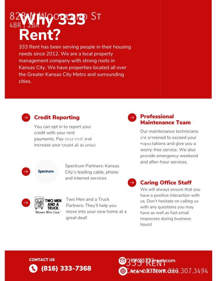 There is currently a 4 Bed 2 Bath Home for rent with 1,320 sq ft listed at 828 N Woodland St. It is Available November 14, 2025.