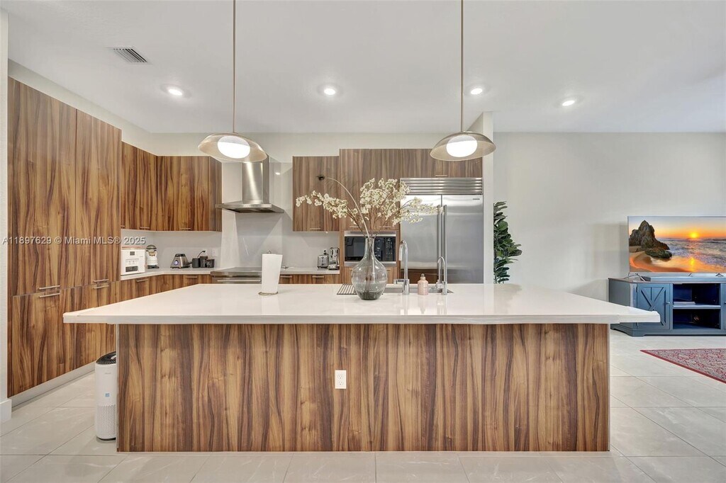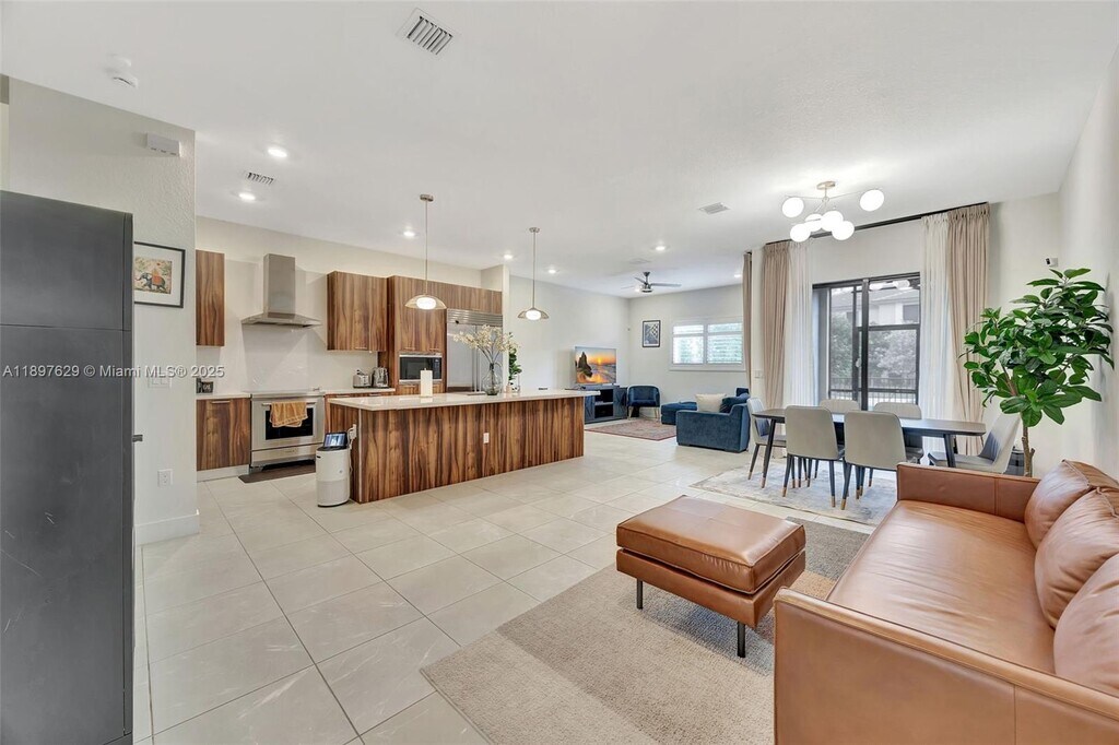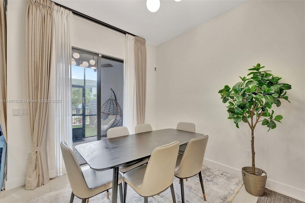 Live Large in this New Home located in the Prestigious Gated Community of CENTRIS. This modern two-story home, situated in the desirable Kendall/Pinecrest area, offers luxury, comfort, security, and quality of life. Featuring 3 bedrooms and 2.5 bathrooms, it boasts an open, bright design with high ceilings, premium wood-look porcelain floors, modern lighting, custom cabinetry in closets and garage, impact windows, and window treatments. The kitchen is a dream, showcasing Wolf and Subzero appliances, elegant quartz countertops, and sleek 42†modern cabinets. Enjoy the covered private patio and fenced garden—perfect for relaxing or entertaining. The community provides secure entry, a beautiful pool, playground, and clubhouse.
