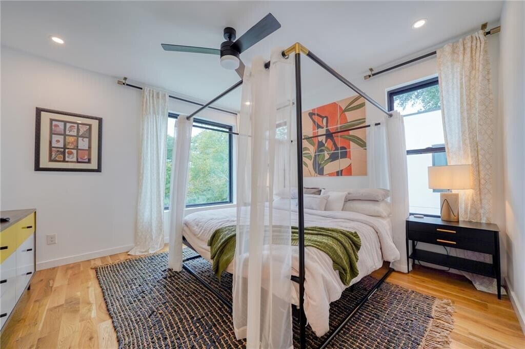 Available December 15. Discover this stylish FURNISHED three-story modern home in Atlanta’s sought-after Virginia Highlands. The home features a two-car garage and a main-level king suite with an ensuite bath and access to a covered patio. The open-concept main floor includes a chef’s kitchen with high-end stainless appliances,gas cooking,and a large island,plus a dining area for 6–8,a cozy living room with fireplace and TV,a half bath,full laundry,and a back deck with seating and string lights. Upstairs,the primary suite offers a king bed,walk-in closet,and spa-like bath with a dual-head shower. Two additional bedrooms—one queen and one twin/daybed with desk—provide flexibility for guests or a home office. Tall ceilings and abundant natural light elevate every space. Located near Piedmont Park,the Beltline,and vibrant shops and dining,this home blends upscale living with unbeatable convenience. $7500 monthly rate for a 6 month+ lease. $8500 for 1 month. $8000 for 3 month.