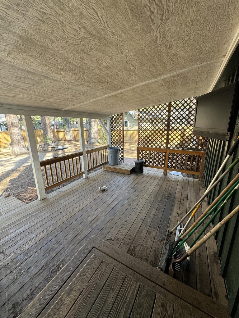 Welcome to this cozy Lake Tahoe Cabin. This 2 bedroom, 1 bath home hosts all of the amenities you would require for an enjoyable long term stay. It includes a washer dryer as well as a wood burning fireplace, for those cold winter nights. You can enjoy the large fenced in backyard, which any dog would love to run around in. In addition, there is a small deck off the bedroom, where you could sit and enjoy your morning coffee, while breathing in the Sierra Mountain air. The location of this property is ideal. It is nestled in a quiet neighborhood, in which you have easy access to grocery stores, restaurants and just a short drive to the Lake. This property is pet friendly. The shed in the backyard is not currently available for use, but will be at a later date. This property is available for a 1 year lease. Tenant is responsible for electric, gas, WI FI and STUPD. Come view this property, so you too, can call Tahoe your home.