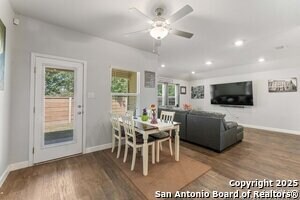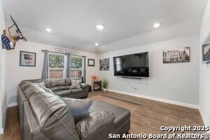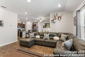 This 3-bedroom, 2-bath home at 829 Margay Loop in Seguin, TX features an open floor plan with granite countertops, stainless steel appliances, and a spacious living area. The master bedroom includes a private bathroom and walk-in closet. Outside, there's a fenced backyard with a covered patio, and the home is located in the Arroyo Ranch community with easy access to nearby schools, shops, and highways.